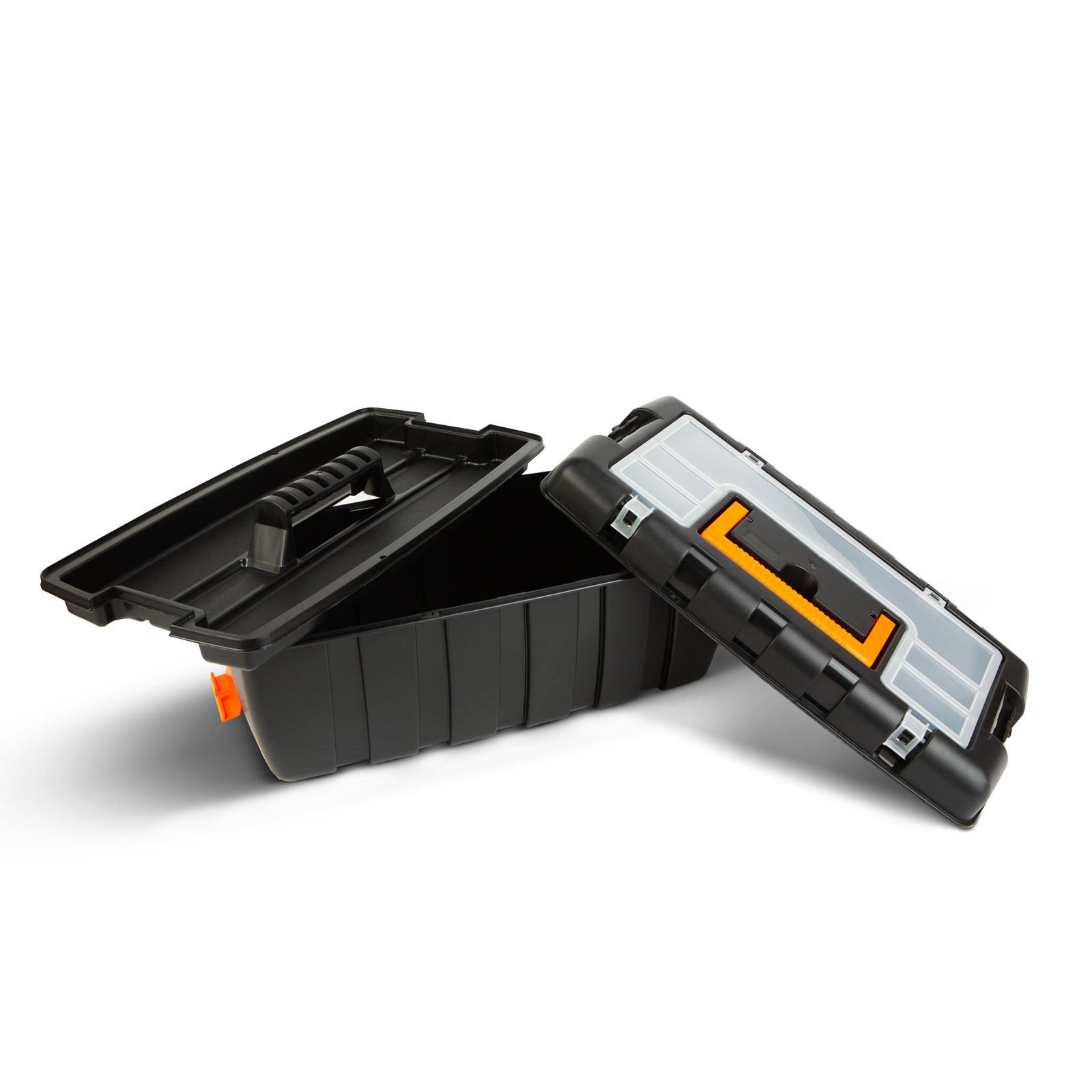 Datorită acestei cutii de instrumente, uneltele și echipamentele dumneavoastră pot fi depozitate și transportate într-un mod organizat și bine separat. Capacul transparent asigură o vizualizare rapidă a accesoriilor depozitate.