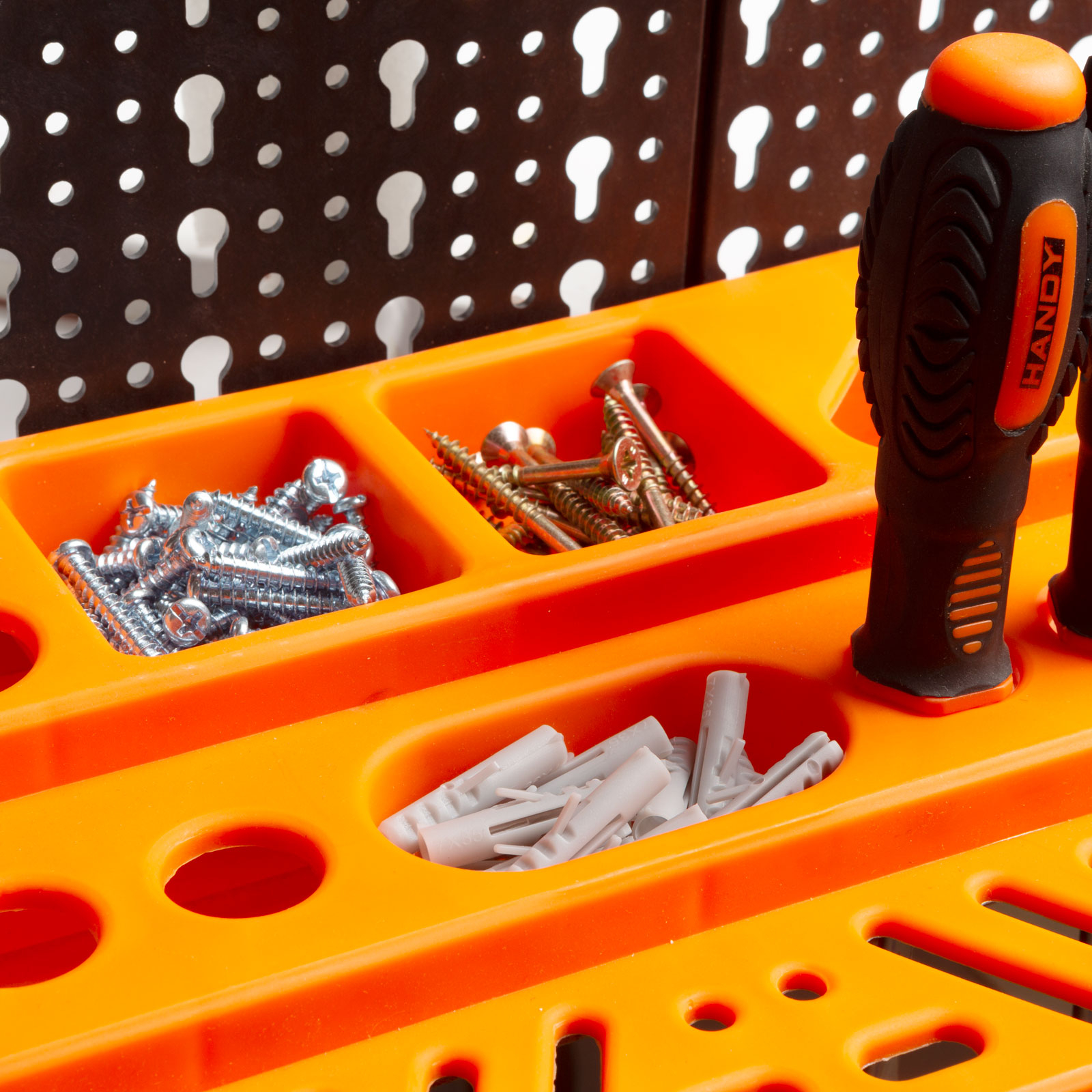 Organizatorul de perete face ca setul tau de scule sa fie mereu la vedere.