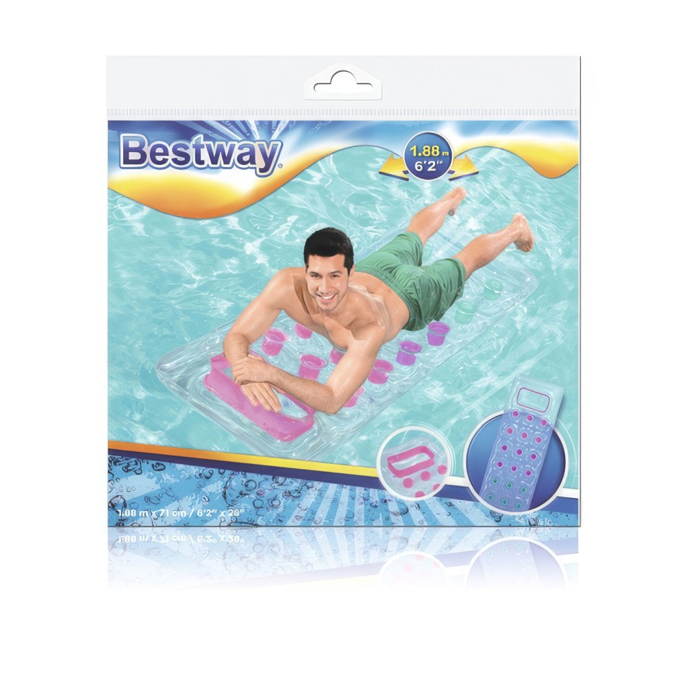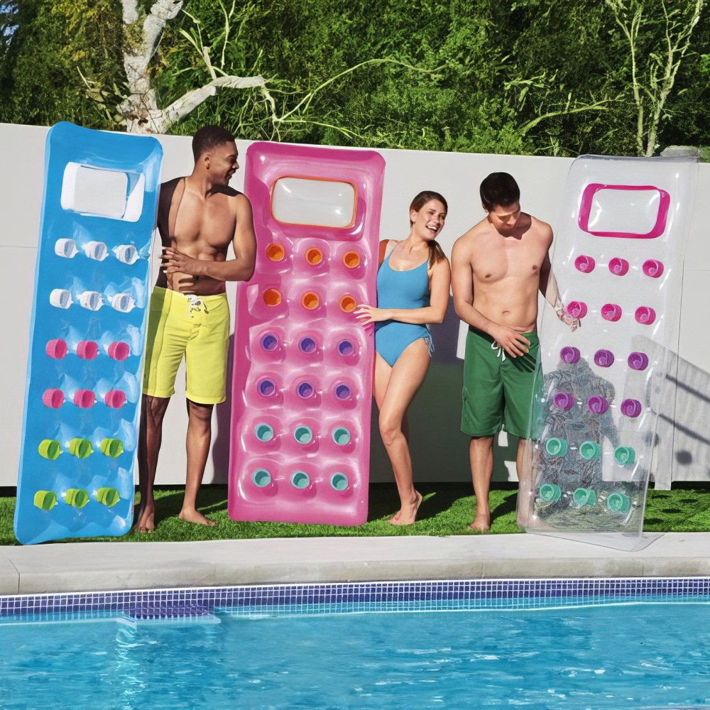 Această saltea va fi un plus minunat pentru aventurile voastre în apă de vară! Dimensiunea saltelei este ideală de comodă pentru intregul corp. Perna incorporata a saltelei este foarte confortabila, maximizand experienta ta de odihna. Fabricat din material PVC de înaltă calitate pentru durabilitate și stabilitate. Ușor de umflat și transportat datorită dimensiunilor sale compacte.