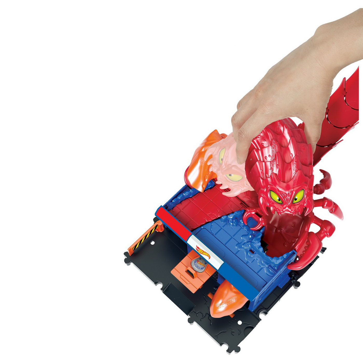 Creaturi fioroase au invadat locurile cunoscute din Hot Wheels City, formand obstacole palpitante si aventuri legendare pe care copiii sa le traiasca impreuna cu vehiculele lor Hot Wheels. Aceste seturi se conecteaza intre ele si cu alte seturi, astfel incat copiii sa isi poata construi propriul peisaj urban unic, plin de provocari si obstacole de inamic care inspira povesti creative prin joc de impins vor dori sa le colectioneze pe toate (fiecare se vinde separat). Include o masina Hot Wheels, astfel ca este un cadou excelent pentru orice ocazie. Culorile si decoratiunile pot varia.&bull Bestii monstruoase s-au infiltrat in locuri cunoscute din Hot Wheels City, formand obstacole interesante si provocari palpitante care inspira aventuri nesfarsite cu cascadorii pentru masini de jucarie!&bull Aceasta colectie cu inamici include un far, o benzinarie si o sectie de politie, cu creaturi gigantice ale caror brate si corpuri s-au transformat in piese de pista care se conecteaza intre ele, precum si la alte seturi Hot Wheels. Fiecare set se vinde separat, in limita stocului disponibil.&bull Este inclus un vehicul Hot Wheels in fiecare set, pentru a porni imediat in aventuri pline de creaturi.&bull Seturile de joaca Hot Wheels incurajeaza povestile creative si explorarea independenta prin joc de impins.&bull Copiii cu varsta cuprinsa intre 4 si 8 ani se vor bucura de seturile de joaca bazate pe inamici, care sunt un cadou excelent.Acest set contine o sectie de politie.