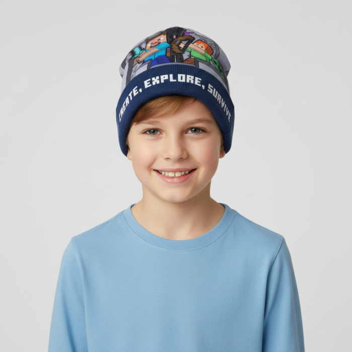 Căciulă copii Minecraft Explore – moale, confortabilă și ideală pentru fanii jocului Minecraft în zilele reci!