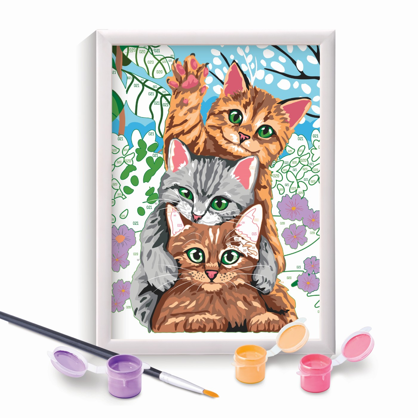 Decoreaza-ti camera cu propria ta opera de arta! Pictura ghidata dupa numere folosind o varietate de culori acrilice.Cu kiturile Paint & Frame, bazate pe tehnica de pictare dupa numere, puteti invata sa colorati diferitele imagini in detaliu,imbunatatindu-va astfel talentul artistic si dezvoltandu-va abilitatile motorii fine. Rezultatul final va va stimula sentimentul de bucurie, mandrie si satisfactie!​ Fii mandru de capodopera ta! Operele de arta colorate plasate in rame va vor decora perfect camera. Contine 16 culori acrilice, o paleta, 1 card preimprimat, o pensula, o rama, 1 manual. Varsta recomandata 9 ani+.