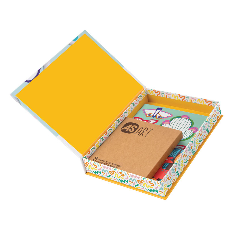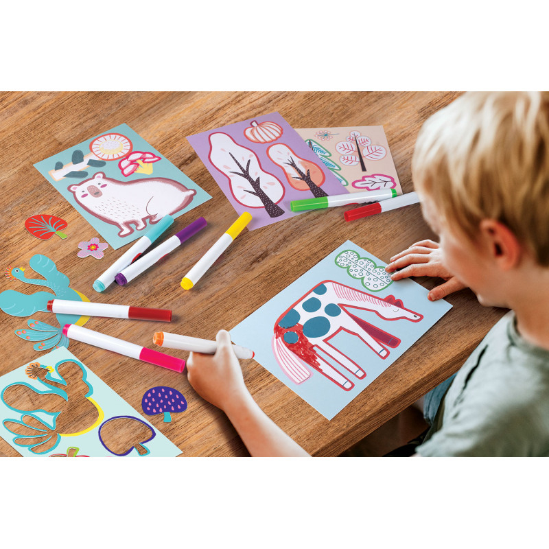Set de pictura cu markere pentru copii mici. Desenati liber, fara sa va faceti griji cu privire la liniile drepte si modelele din margine. Pictati cu culorile preferate si apoi indepartati contururile. Creatia ta este gata sa fie decorata. Setul promoveaza capacitatea de perceptie, imaginatia si creativitatea. Contine 10 cartonase pretiparite si predecupate cu modele, 8 markere potrivite pentru copiii mici si un ghid detaliat de colorat cu instructiuni pas cu pas pentru a obtine rezultate frumoase.