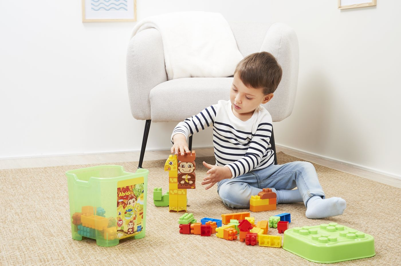 Setul de constructie Ecoiffier Abrick Animale (70 de piese) este un joc creativ si educativ, ideal pentru copiii cu varsta de 18 luni si mai mari. Acest set contine 70 de piese colorate, care permit micutilor sa construiasca diverse forme si animale, dezvoltandu-le imaginatia si abilitatile motorii fine. Piesele sunt de dimensiuni mari, usor de manevrat, fiind realizate din material plastic de calitate, sigur pentru copii. Setul include componente pentru a crea o varietate de animale, precum elefanti, cai, vaci si multe altele, iar fiecare piesa se potriveste perfect cu celelalte, stimuland dezvoltarea coordonarii mana-ochi. Cu ajutorul acestui set, copiii isi pot dezvolta creativitatea, invatand totodata despre forme si culori, in timp ce se distreaza construind propriile lor lumi pline de animale. Setul Ecoiffier Abrick este o alegere excelenta pentru jocurile de grup sau pentru timpul de joaca individual, aducand ore de distractie si invatare!