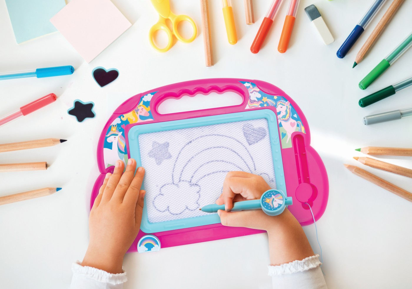 Deseneaza nenumarate desene oriunde te-ai afla cu Magic Scribbler Fantasy Dreams. O panza, o radiera magica, un pix magnetic cu sfoara, pentru a nu se pierde si doua stampile ii ofera copilului posibilitatea de a scrie si sterge de nenumarate ori. Asadar, distractia nu are limite! Deseneaza unicornii visurilor tale si fa-i si mai impresionanti folosind stampilele. Deseneaza-sterge cu o singura miscare si ia-o de la capat! Ideal ca si cadou, deoarece ajuta la dezvoltarea imaginatiei si a exprimarii de sine a copilului. În plus, nu trebuie sa-ti faci griji ca se murdaresc copilul, casa sau masina. Nu contine vopsele si, prin urmare, nu pateaza. Ce este cel mai bun? Nu mai trebuie sa-ti faci griji cu privire la imperfectiunile de pe picturile tale, deoarece poti sterge si desena de cate ori doresti!