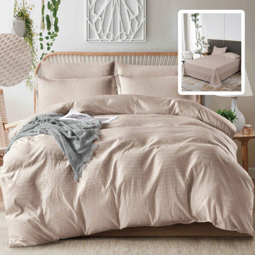 Lenjerie de pat creponată uni 6 piese cu husă (bej)