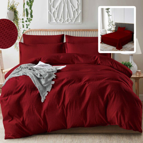 Lenjerie de pat creponată uni 6 piese cu husă (roșu)