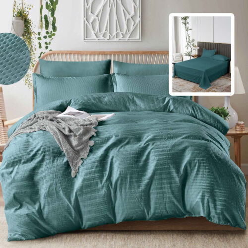 Lenjerie de pat creponată uni 6 piese cu husă (turcoaz)