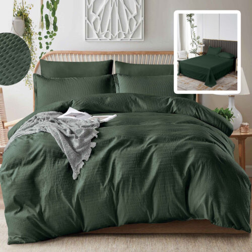 Lenjerie de pat creponată uni 6 piese cu husă (verde)