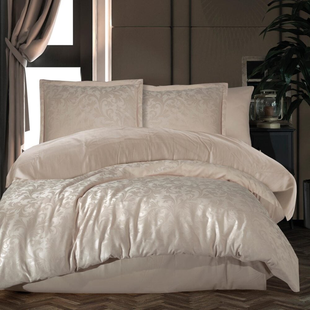 Lenjeriile de pat din  sunt realizate la standarde de calitate din bumbac 100% de tip jaquard, se remarca datorita rezistentei materialului si dimensiunilor generoase.