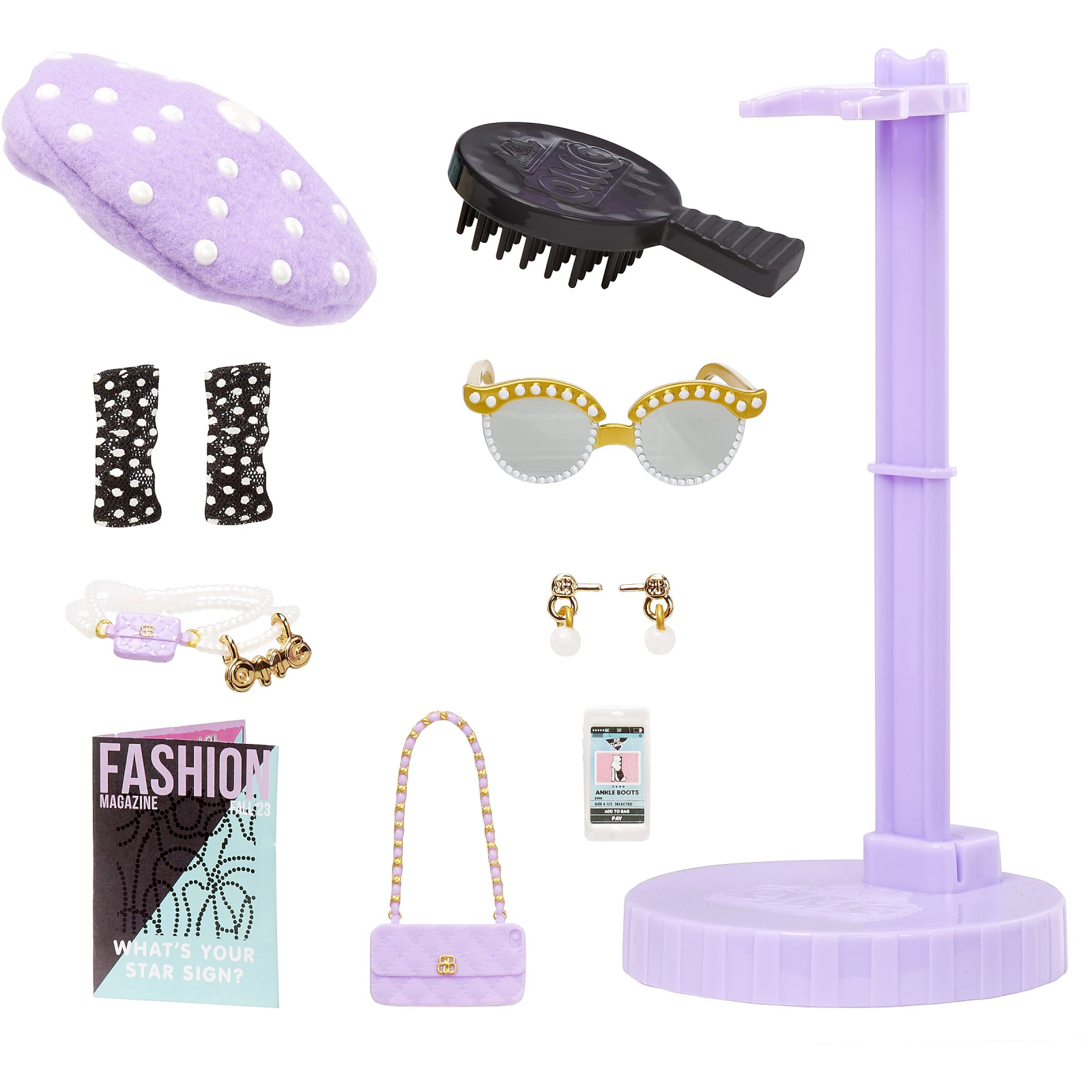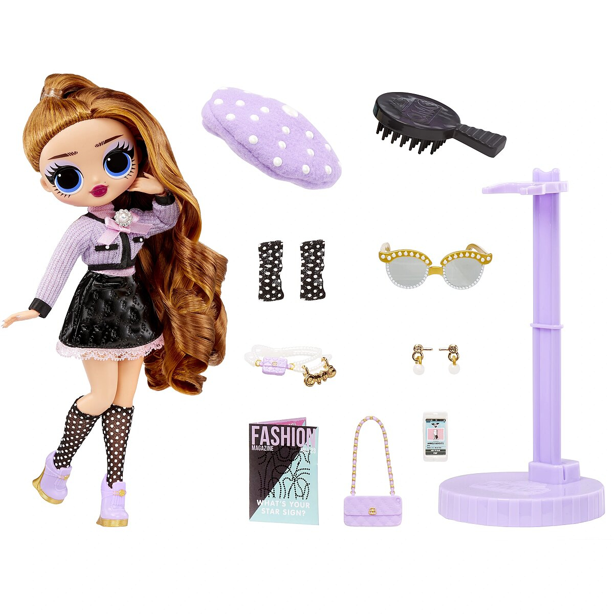 Descopera papusa L.O.L. Surprise! OMG - Pose! Pose este mereu gata de o sesiune de shopping, fiind experta in descoperirea celor mai noi tendinte! Cand prietenele ei se simt pierdute printre rafturi, Pose este cea pe care o suna, deoarece adora sa impartaseasca cele mai recente stiluri cu BFF-urile ei. Papusa Pose are trasaturi uimitoare, par superb, o tinuta glamour si este articulata pentru a-ti permite sa creezi nenumarate scenarii de joaca.Setul includeTinuta fabuloasa si accesorii care reflecta stilul rafinat al lui Pose.Bluza chic cu funda, poseta in forma de carcasa de telefon, bereta mov si multe altele.Pantofi, ochelari, perie de par si un stand pentru papusa.Colectioneaza-le pe toate si exploreaza o lume a modei, surprizelor si prieteniei!