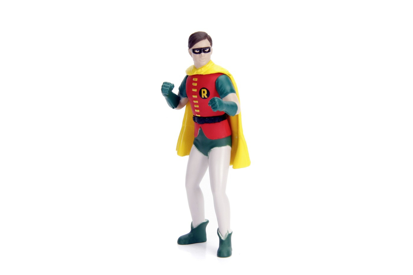 Nicio colectie Batman nu este completa fara iconicul Batmobil de la Batman serialul TV clasic! Avand anvelope de cauciuc si caracteristici de iluminare, acest Batmobil la scara 118 este un must-have in orice colectie! Sunt incluse doua figurine (Batman si Robin). Cu usile, capota si portbagajul ce se pot deschide, Batmobilul este formidabil pe toate tipurile de teren!
