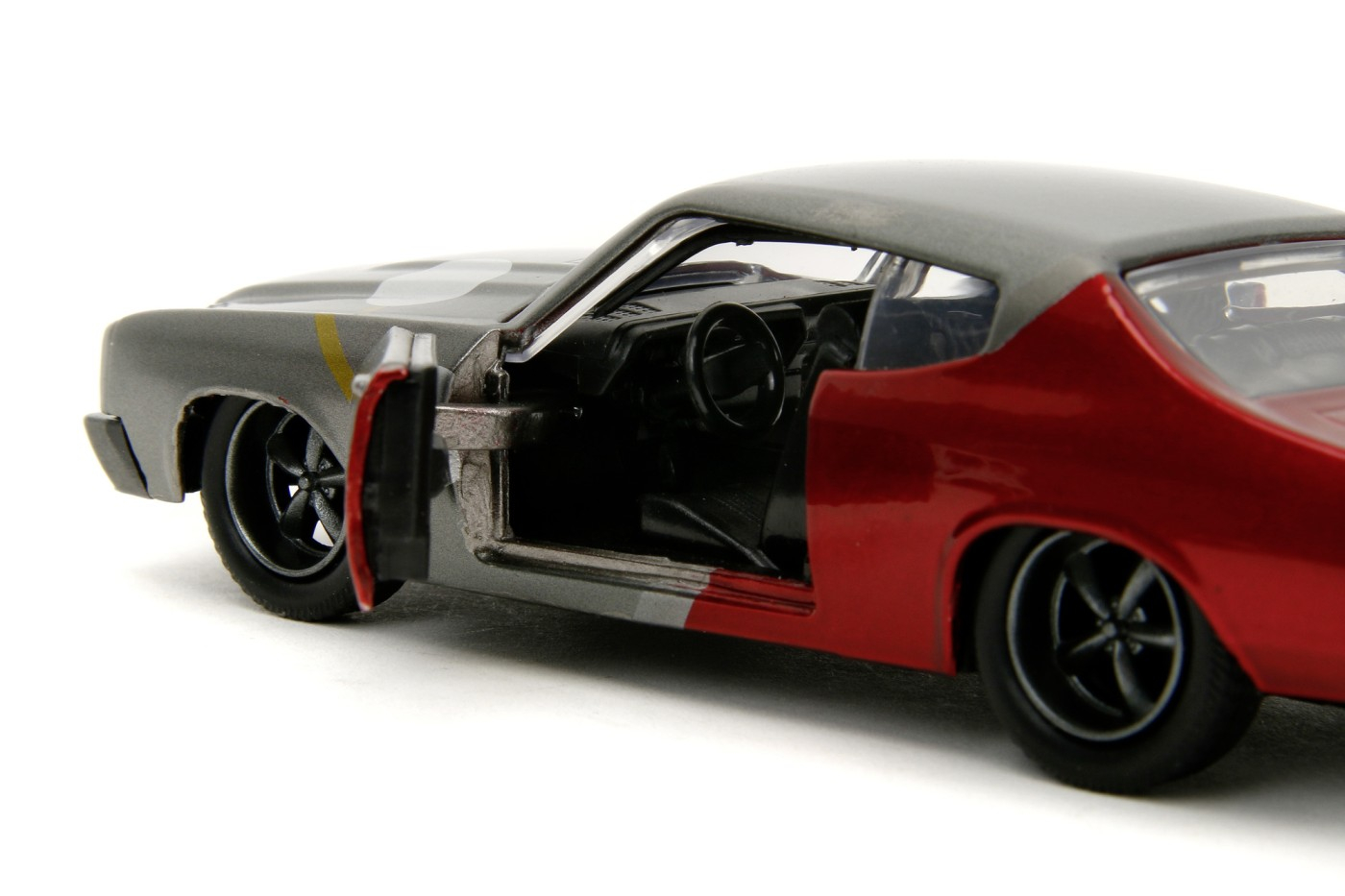 Intra in universul eroilor Marvel cu setul colectionabil de exceptie de la JADA Toys, care combina actiunea si puterea mitologica a supereroului Thor cu eleganta si forta bruta a unui muscle car american clasic Chevy Chevelle SS , totul realizat la o scara detaliata de 132. Acest set special cuprinde o figurina metalica autentica cu Thor , realizata cu o atentie impresionanta la detalii, ce reda fidel costumul emblematic al Zeului Tunetului, ciocanul Mjölnir si expresia sa hotarata. Figurina este confectionata din metal turnat (die-cast) , care are o greutate placuta si o textura realista , ceea ce o transforma intr-o piesa de colectie valoroasa atat pentru fanii Marvel, cat si pentru pasionatii de figurine de calitate. Alaturi de Thor, setul include si o reproducere metalica la scara 132 a masinii Chevy Chevelle SS , una dintre cele mai apreciate masini din istoria automobilismului american. Designul acestui model este inspirat din universul Marvel, cu detalii si accent vizual care reflecta personalitatea si simbolistica lui Thor inclusiv o vopsea speciala, grafice tematice si detalii metalice ce sporesc impactul vizual. Masinuta este realizata din metal turnat cu piese din plastic de inalta calitate , are usi functionale , roti care se invart liber si o fidelitate remarcabila fata de modelul real. Acest set este ideal atat pentru colectionarii pasionati , care doresc piese originale si de efect, cat si pentru copii care doresc sa recreeze scene epice cu Thor si vehiculul sau inspirat. Poate fi expus cu mandrie in vitrine, rafturi tematice sau integrate in jocuri imaginative. Reprezinta de asemenea o idee excelenta de cadou pentrupentru orice fan Marvel sau automobilistic.