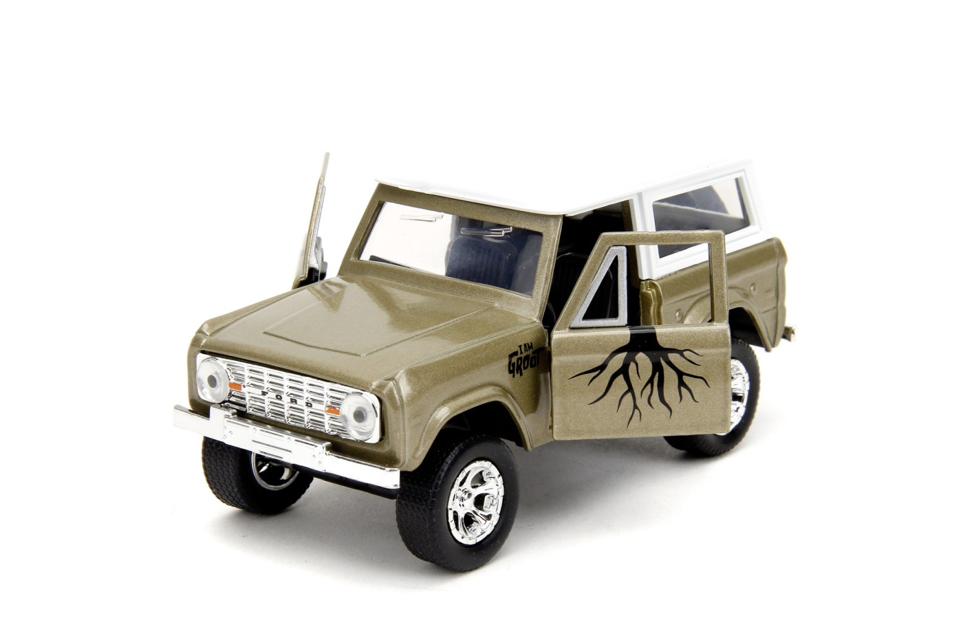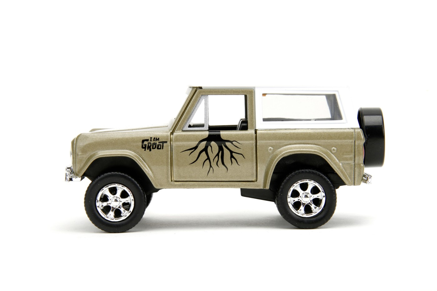 Acest Ford Bronco din 1973, cu elemente de stil inspirate din legendarele filme &bdquoGardienii Galaxiei&rdquo este un adevarat atu pentru orice colectionar. Masina din metal la scara 132, lungime 13,9 cm, cu usi ce se pot deschide. Setul include si o figurina Groot din metal.