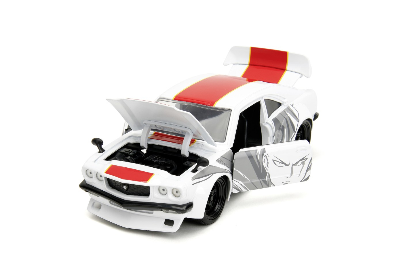 Set Jada format din figurina One-Punch Man si masina Mazda RX-3 din 1974 . Masina din metal, la scara 124, lungime 20 cm, usile, portbagajul si capota se pot deschide. Setul include si o figurina din metal One Punch Man.