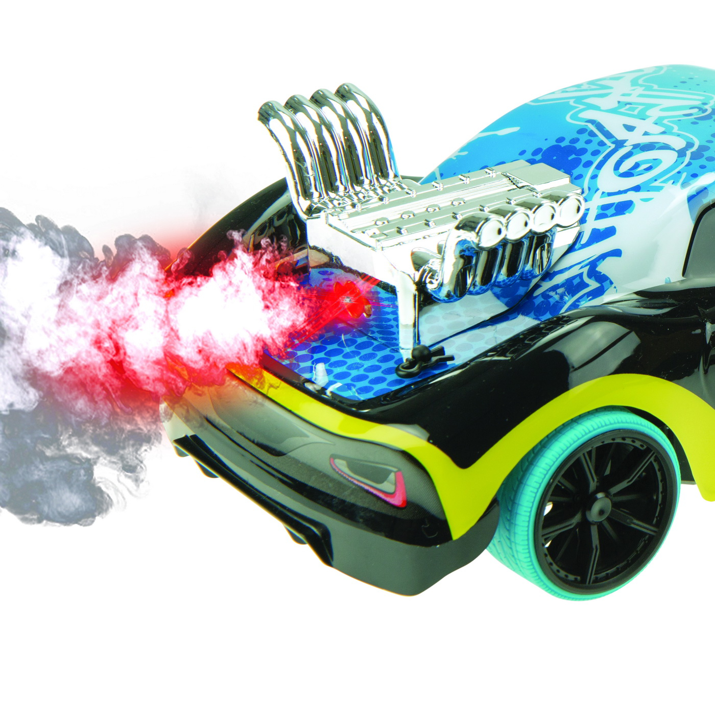 Masinuta cu telecomanda marca EXOST, construita pe o scara de 114, cu transmisie 2,4GHZ si 2 lumini LED pentru efecte adevarate de fum si efect de miscare. Cu un design urban nou, modern si fum controlat cu telecomanda. Varsta recomandata 5+. Functioneaza cu baterii 5xAA (nu sunt incluse) pentru vehicul, 2xAA (nu sunt incluse) pentru telecomanda.