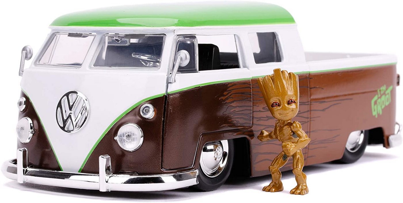 Masinuta de metal Volkswagen, a personajului Groot, este construita la scara 1 la 24. Portierele se pot deschide. Setul include o figurina de metal Groot.