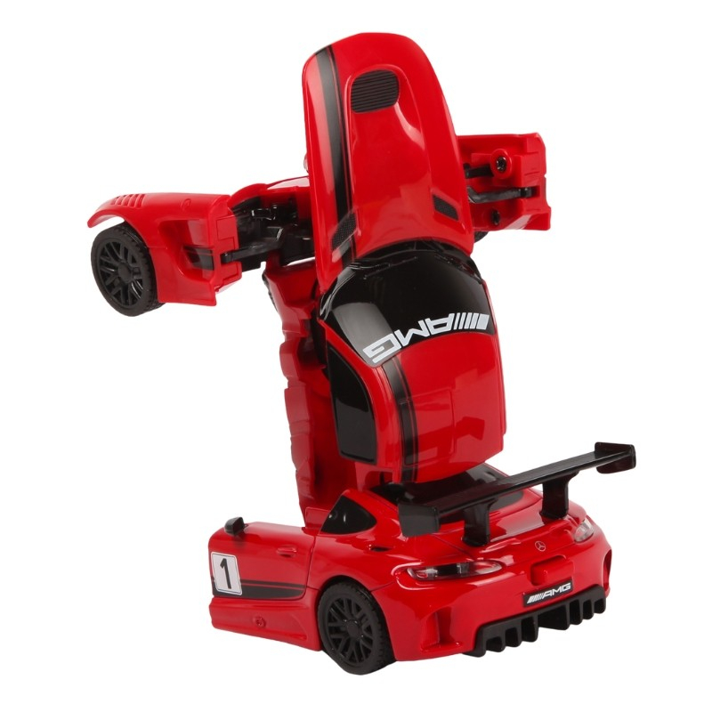 Masinuta Mercedes-Benz GT3 Transformable este gata de a iesi din cutie! Poate fi masinuta sau robot! Efecte luminoase si sunete in timpul miscarii.Masinuta are proportiile ideale pentru momente pline de distractie si amuzament, avand dimensiunile in centimetri dupa cum urmeaza 13.5*9.5*15.5cm. Masinuta metalica Mercedes-Benz GT3, scara 1 la 32, are anvelope de cauciuc si un design detaliat interior-exterior realizat din material metalic turnat cu accesorii realizate din material plastic portiere de calitate superioara. Copilul dumneavoastra se poate juca in voie cu masina metalica Mercedes-Benz GT3 oferita de brandul international Rastar. Nicio cursa nu este imposibil de castigat cu acesta masinuta, care este o replica oficiala cu licenta a modelului original, construita cu mare atentie la detalii. Pasionatii si colectionarii de machete metalice pot de asemenea aprecia aceasta macheta metalica.