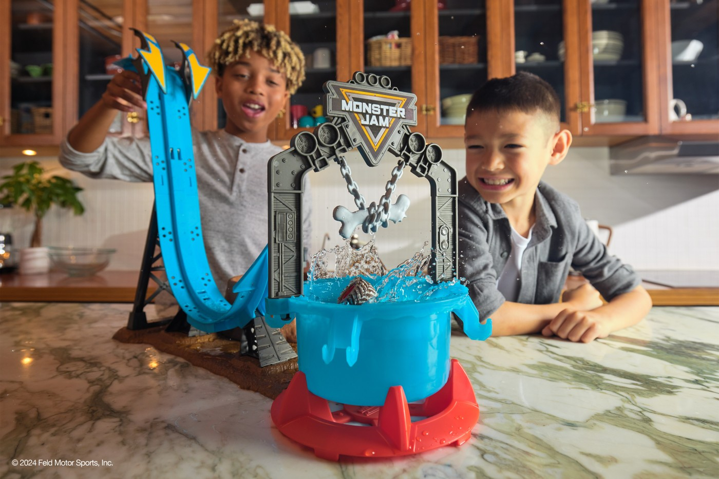 Aruncati-va in entuziasmul plin de actiune al Monster Jam cu Monster Mutt Dalmatian Dunk Tank din seria aruncatoarelor de noroi Mud Blasters - perfect pentru cadouri de jucarii pentru copii, pentru baieti si fete cu varste de la 3 ani in sus. Acest set de joaca include o rampa si un bazin, unde copiii pot lansa camionul deosebit Monster Mutt Dalmatian la scara 164 intr-o aventura transformatoare. Lanseaza-l. Da-i drumul. Murdareste-l. Tinteste-ti camioanele Monster Jam spre piscina plina cu apa calda si priveste cum camionul isi leapada exteriorul noroios, dezvaluind un model uimitor si curat. Compatibil cu toate camioanele Mud Blasters Monster Jam 164. Distractia nu se opreste aici - scufunda-l in apa rece pentru a vedea cum ii revine aspectul plin de noroi, oferind o distractie fara sfarsit. Aceasta schimbare magica de culoare fascineaza si imbunatateste abilitatile motorii fine si incurajeaza jocul imaginativ. Ideala pentru o zi de nastere, o sarbatoare, o ocazie speciala sau un cadou surpriza, aceasta jucarie Monster Jam garanteaza ore intregi de distractie, fiind o alegere de top pentru parintii care doresc sa inspire creativitate si spirit de aventura copiilor lor.