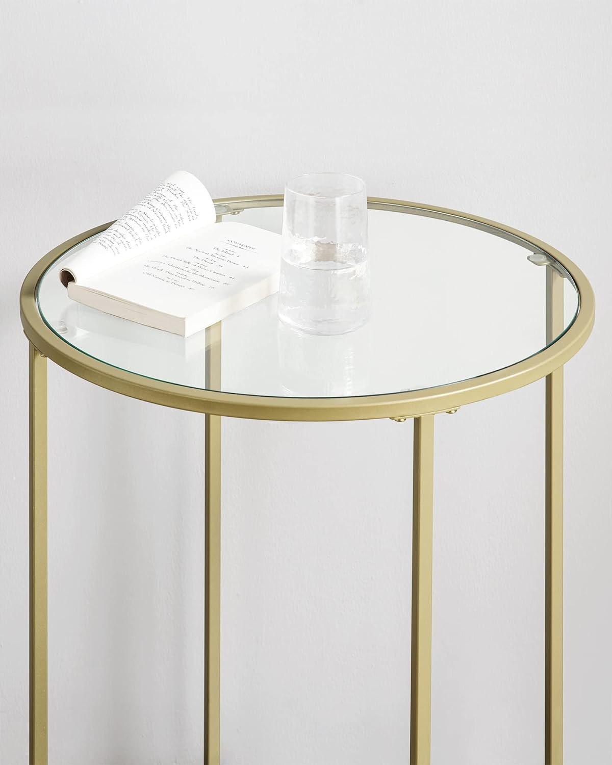 Dimensiunile produsului: 50D x 50W x 55H cm Culoare: Aur Marca: VASAGLE Despre acest articol Un covor pufos, o flacara trosnitoare in semineu, o canapea mare si, alaturi de toate, se afla aceasta masuta laterala de culoare aurie - aduceti flerul timpului confortabil in casa dvs. si creati in continuare un aspect modern de top!2 inele, precum si 4 picioare din otel robust formeaza fundatia stabila a acestei masute mici si nobile - un accent rezistent, dar gratios pentru casa ta!Suprafata acestei mese laterale este realizata din sticla calita cu grosimea de 5 mm, care este deosebit de robusta si rezistenta la socuri. Placa de sticla stabila poate fi incarcata cu pana la 40 kg.Indiferent daca doriti sa plasati aceasta noptiera pe un covor sau pe podeaua din lemn de esenta tare, picioarele reglabile va permit sa compensati denivelarile minore si, de asemenea, sa va protejati podeaua de zgarieturi.Nimanui nu-i place sa-si trezeasca mintea la asamblare dificila. Si de aceea acest tabel vine cu o structura simpla, parti numerotate si instructiuni clare pentru a va ajuta sa il finalizati usor si rapid.