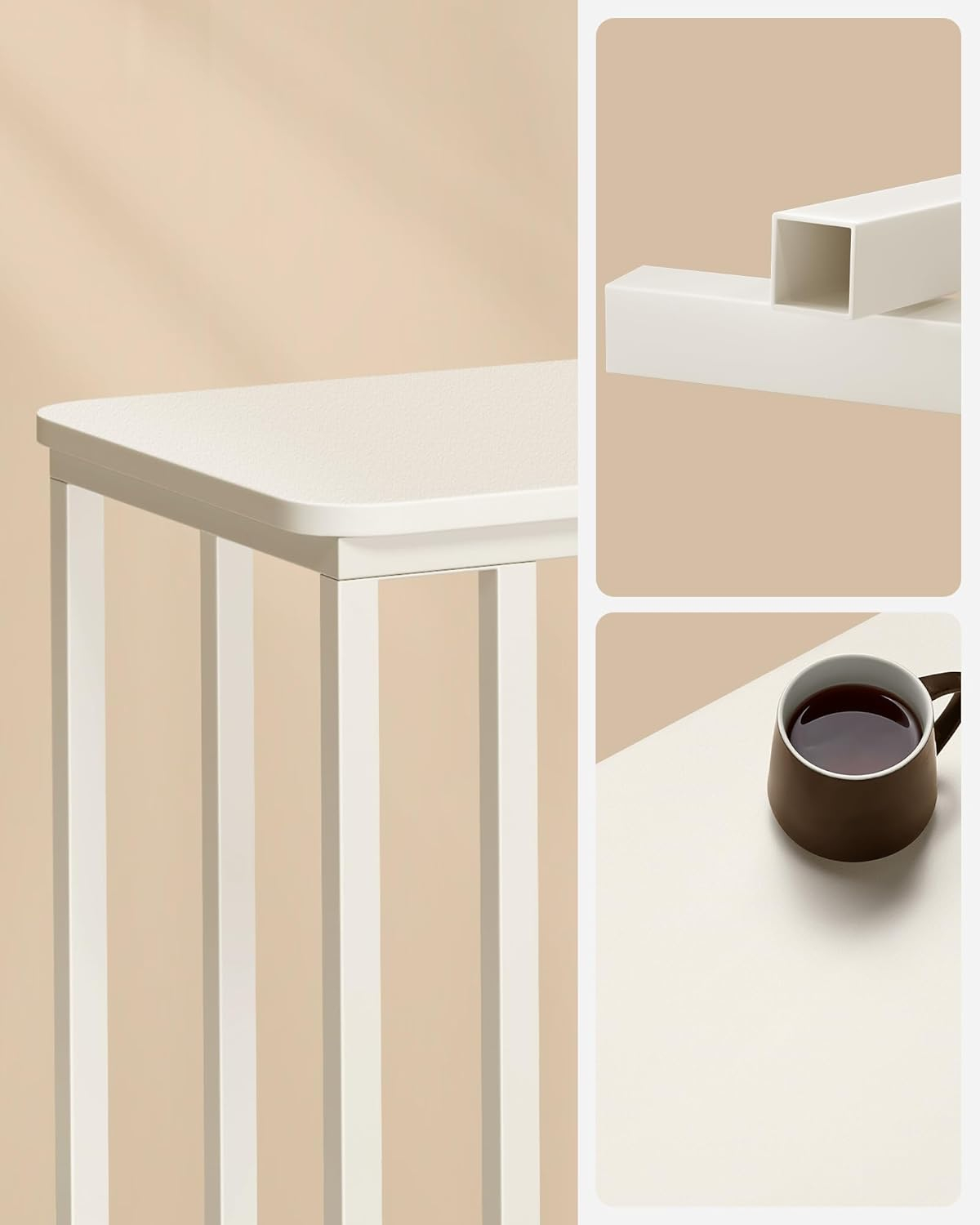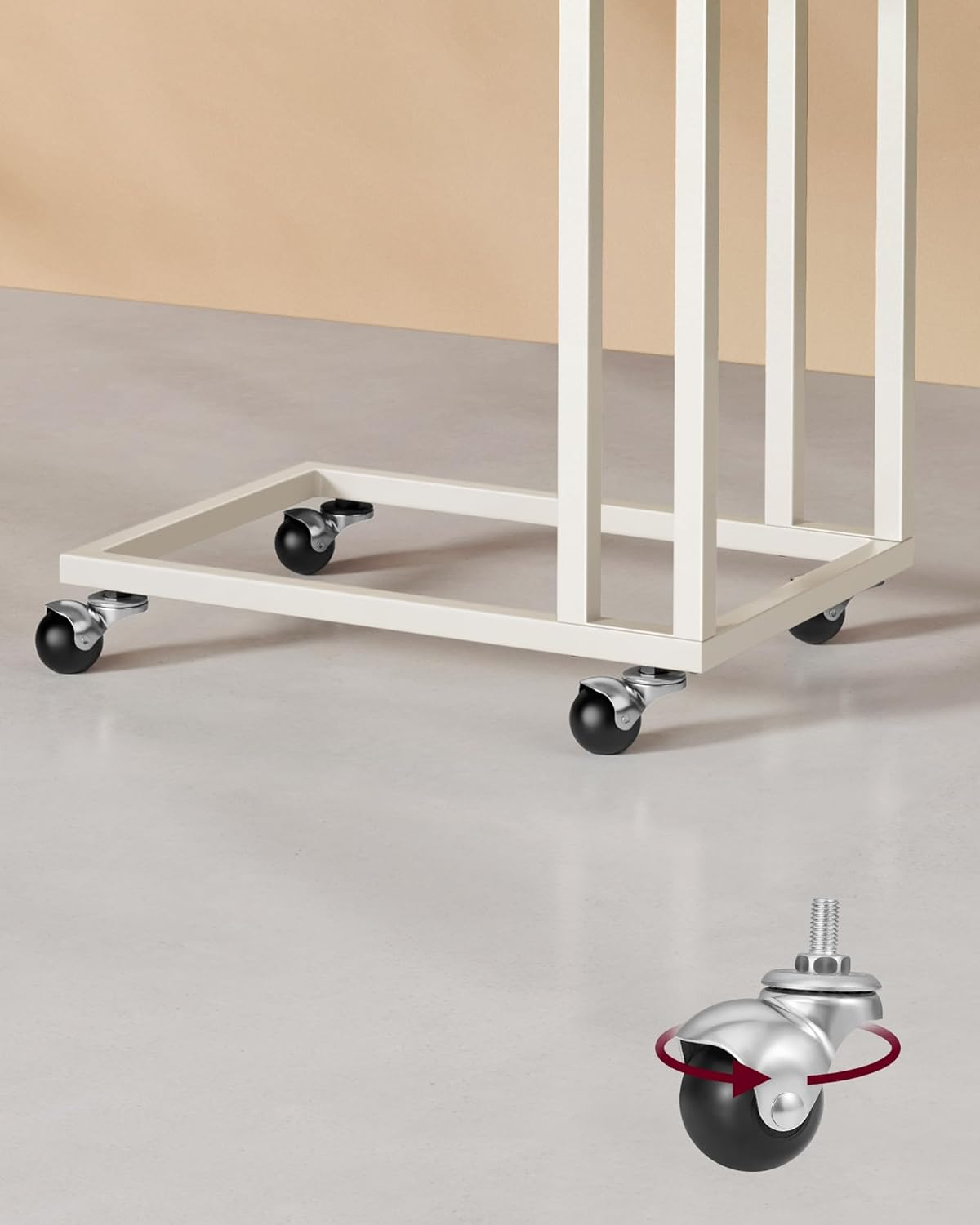 VASAGLE Masuta de cafea, cu cadru de otel si roti, stil industrial, 35x50x60 cm, crem