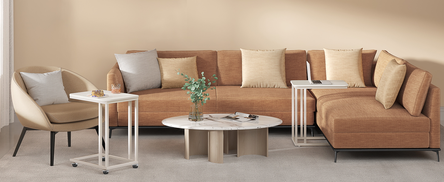 Informatii despre produs: Culoare: crem Material: PAL, otel Masa cu roata: 35 x 50 x 60 cm (L*L *H) Dimensiunea mesei cu picioare reglabile: 35 x 50 x 56 cm (L*L *H) Sarcina statica maxima capacitate: 25 kg Note: Distanta dintre cadru si podea este de 7 cm. Pentru a putea glisa masuta de dedesubt, suprafata inferioara a canapelei trebuie sa fie mai inalta de 7 cm. Despre acest articol Ceva care este sigur: Unele piese de mobilier arata bine, dar nu sunt foarte practice. Altele sunt functionale, dar arata rece si plictisitor. Dar nu si aceasta masa laterala. Cu tonurile sale calde alb-crem, un blat stabil si 4 roti, aceasta ofera un amestec perfect de forma si functionalitate. Design perfec: Rama solida din otel si blatul robust, rustic, alb-crem al mesei este exact amestecul elegant de stiluri care face ca aceasta masuta mobila sa iasa in evidenta. Are o durabilitate remarcabila si o capacitate mare de incarcare totala de pana la 25 kg. Mic dejun in pat?: Aceasta masuta are 4 roti de rulare care o fac usor de rulat sub canapea sau pat (este necesara o distanta de 7 cm). Puteti in sfarsit sa va rasfatati din nou iubita cu micul dejun in pat. Cu roti sau picioare?: In plus fata de cele 4 roti, 4 picioare fixe sunt de asemenea incluse in livrare, astfel incat sa puteti fixa si masa intr-un singur loc. Nu este nevoie de mult efort pentru a monta aceasta masa laterala. Ce primiti: O masa laterala cu un cadru din otel si blat alb-crem, 4 roti de rulare pentru a o face mobila si 4 picioare reglabile pentru a o mentine in pozitie.