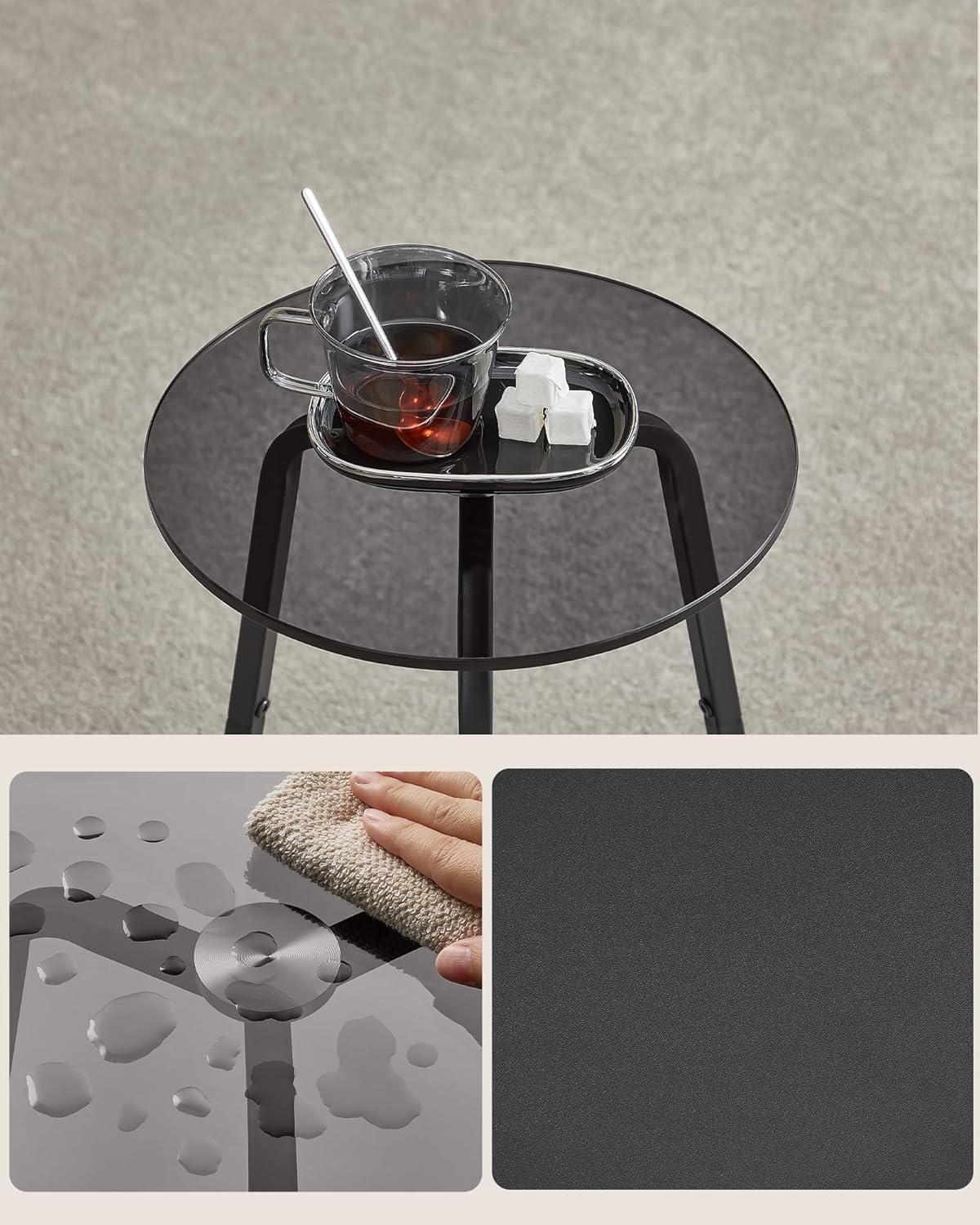 Specificatii tehnice: Tip produs: Masuta laterala / noptiera Material blat: Sticla securizata Material raft inferior: PAL Material cadru: Metal Culoare: Marble black (negru cu efect marmura) Dimensiuni: 30 x 30 x 55 cm Capacitate maxima suportata: 25 kg Forma: Rotunda Intretinere: Se curata cu o laveta umeda Scurta descriere: Aceasta masuta VASAGLE cu design rotund este alegerea ideala pentru spatiile mici si elegante. Cu un blat din sticla securizata cu aspect marble black si un raft inferior din PAL, combina estetica moderna cu functionalitatea practica. Caracteristici principale: Design minimalist cu efect marmura si cadru negru Blat superior din sticla securizata pentru un look rafinat Raft inferior din PAL pentru depozitare suplimentara Structura stabila din otel rezistent Perfecta ca masuta de canapea sau noptiera Se curata usor cu laveta umeda