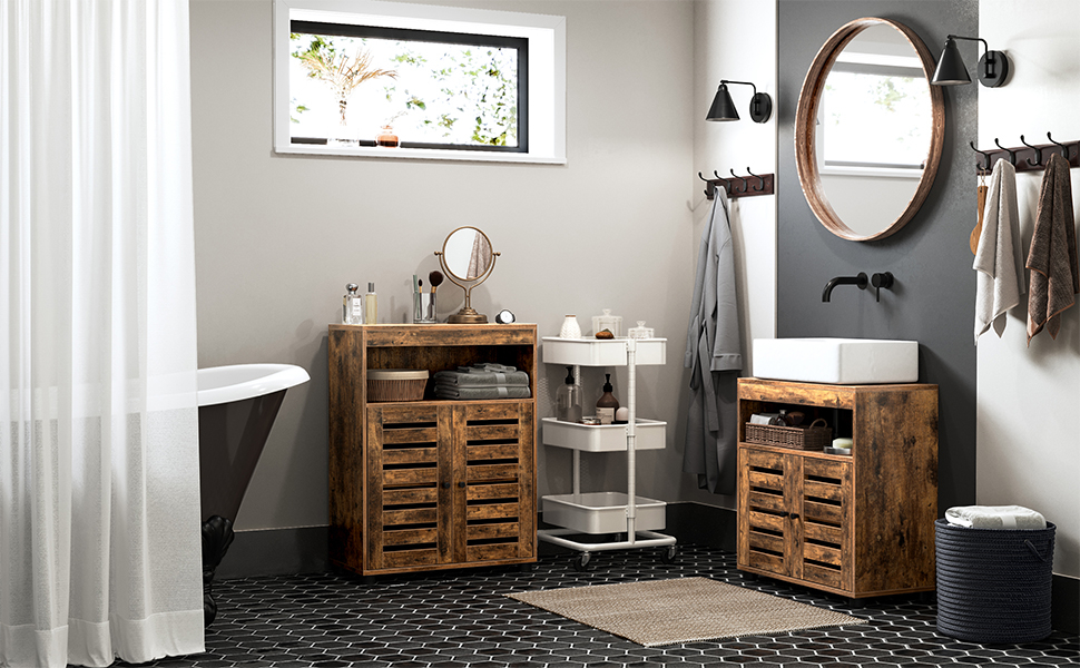 Detalii despre produs: Culoare: Vintage maro-negru Materiale: Placi aglomerate din lemn, otel Dimensiuni: 60 x 30 x 60 cm (L x l x i). Dimensiunea deschiderii pentru sifon: 20 x 15 cm (L x l). Greutate: 12,4 kg. Max. Capacitate de incarcare statica: 10 kg. Despre acest articol Baia dvs. isi doreste un aspect nou. De ce sa nu o rasfatati cu aceasta piesa de mobilier maro vintage, care emana un farmec atemporal si care confera baii dvs. un caracter unic?Acest dulap de toaleta este fabricat din lemn de inalta calitate si otel durabil. De aceea este atat de rezistent si durabil. Va ramane stabil timp de multi ani.Obiectele utilizate frecvent, cum ar fi pieptenele si parfumurile, se potrivesc perfect in compartimentul deschis. In spatele usii se afla un raft reglabil pe 3 niveluri pentru prosoape uscate, hartie igienica etc. Totul la indemana.Instructiunile complete si ilustrate dar si piesele numerotate va ajuta sa construiti acest dulap de baie. Mobilierul de baie nu ar trebui sa va aduca batai de cap, ci doar bucurie.Ce primesti: Un dulap de baza rustic (60 x 30 x 60 cm) cu o deschidere pentru sifon (20 x 15 cm). Dulapul inveseleste baia si ofera mult spatiu de depozitare - totul este bine aranjat.
