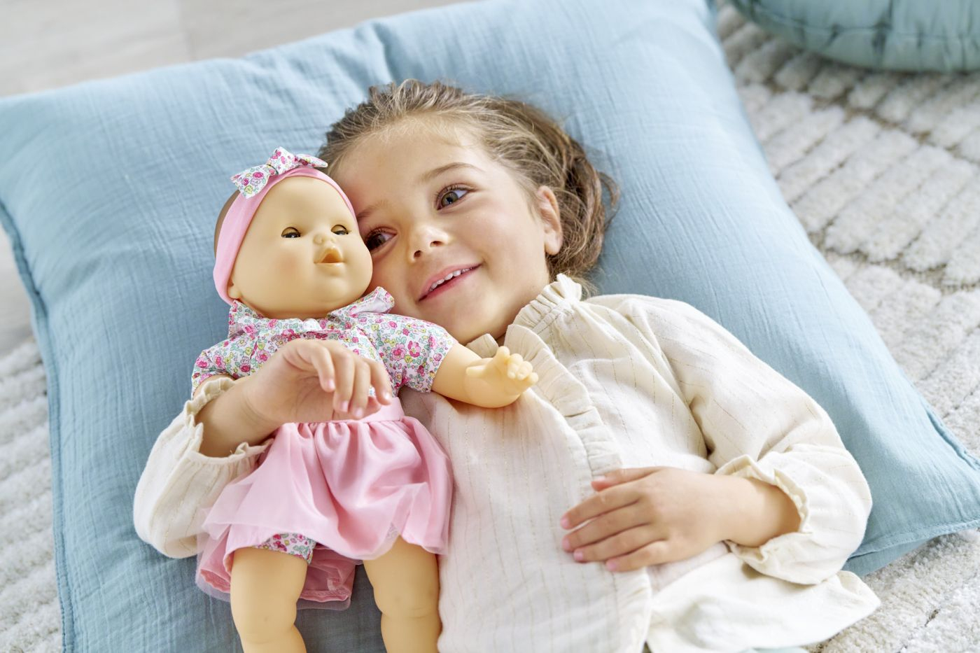 Adorabilul meu Grand Poupon este o papusa bebelus Corolle mare, destinata actionarii ca adultii. Masoara 36 cm, o dimensiune perfect potrivita bratelor mici ale unui copil pentru a fi alintat, ingrijit si pentru a reproduce gesturile care fac sa creasca. Adorabilul meu Grand Poupon are pielea deschisa la culoare fata, bratele si picioarele sunt fabricate din vinil moale la atingere, cu un parfum delicat de vanilie. Corpul sau este suplu si usor pentru o manevrare si o joaca usoara. Degetul mare poate fi tinut in gura. Cu ochii sai albastri somnorosi, adoarme cand este intinsa pe spate. Adorabilul meu Grand Poupon iese in evidenta prin gulerul asortat, cusut direct in jurul gatului. De asemenea, are un tutu moale din tul, detasabil, pentru varierea tinutei! Este completata cu o bentita asortata, care adauga o nota finala acest aspect delicat.