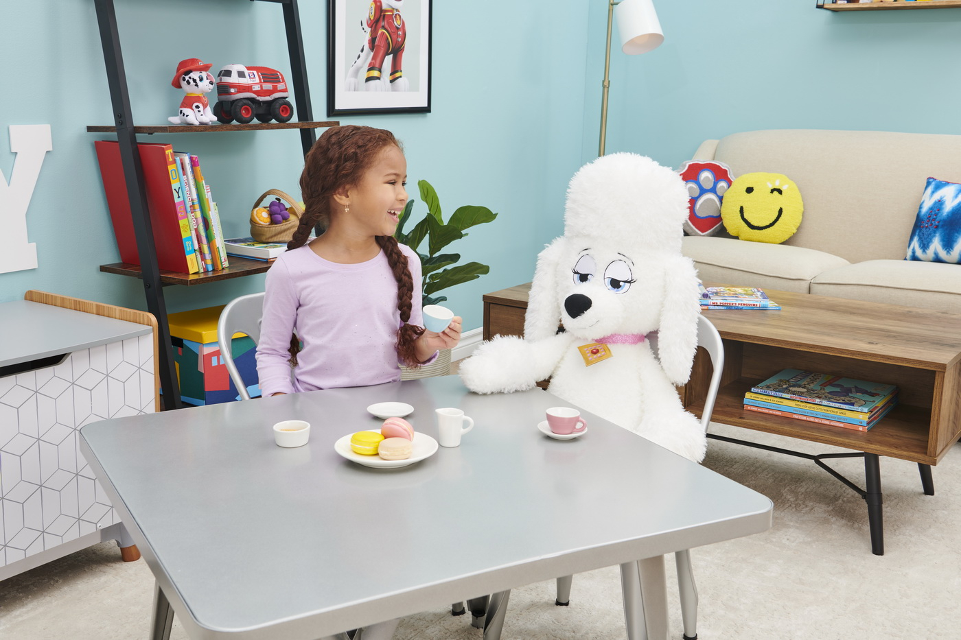 Cuibareste-te alaturi de personajele tale preferate din filmul Patrula Catelusilor cu jucariile de plus uriase! Delores este gata pentru aventuri marete si imbratisari la fel de mari. Avand 73 de cm si fiind realizata dintr-un material de plus foarte pufos, personalitatea lui Delores este surprinsa perfect de boticul dragalas, urechile pufoase si detaliile cusute! Aceasta jucarie de plus super mare Patrula Catelusilor este pregatira sa te insoteasca oriunde si este perfecta in timpul somnului dar si la joaca sau oricand in timpul zilei. Pentru si mai multe imbratisari pufoase, colectioneaza toate animalele uriase din plus din filmul Patrula Catelusilor, printre care si Chase si Skye (fiecare vandute separat). Aceste plusuri uriase pentru baieti si fete sunt cadoul perfect pentru copiii cu varsta de peste 3 ani. Ia acasa jucariile de plus uriase Patrula Catelusilor pentru imbratisari si aventuri nesfarsite!