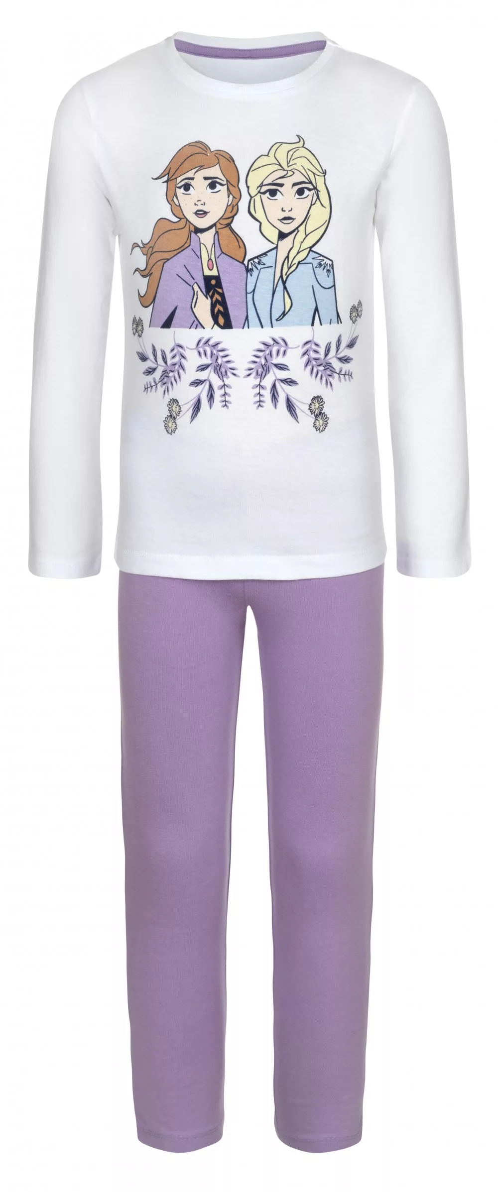 Inspirată din celebra lume Frozen, pijamaua are un design fermecător cu Elsa și Anna, simbolurile prieteniei și curajului. Bluza albă cu mânecă lungă și imprimeu colorat este completată perfect de pantalonii mov, oferind un aspect armonios și modern.