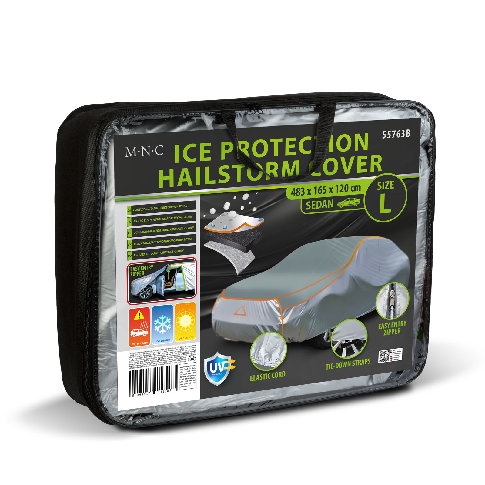 Această prelată auto impermeabilă anti-grindină, mărimea L, este soluția ideală pentru protejarea autoturismelor de tip sedan împotriva intemperiilor. Realizată din material rezistent Oxford 150D și strat de spumă EVA de 4 mm grosime, prelata oferă o protecție excelentă împotriva grindinei, razelor UV, ploii și prafului. Este prevăzută cu fermoar lateral pentru acces facil, logo reflectorizant pentru vizibilitate crescută pe timp de noapte și benzi elastice care mențin prelata fixată chiar și în condiții de vânt puternic.