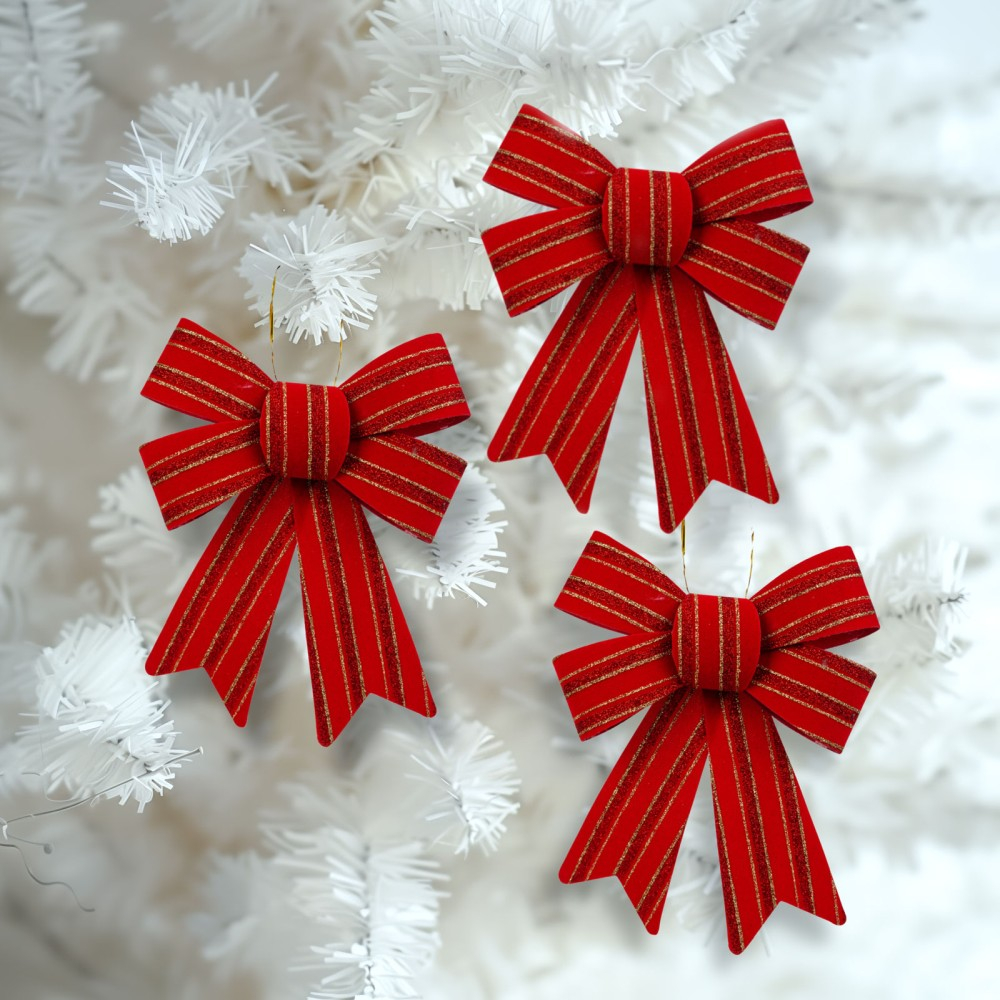 Decor Crăciun - fundiță - roșu - 10 x 13 cm - 3 buc/pachet