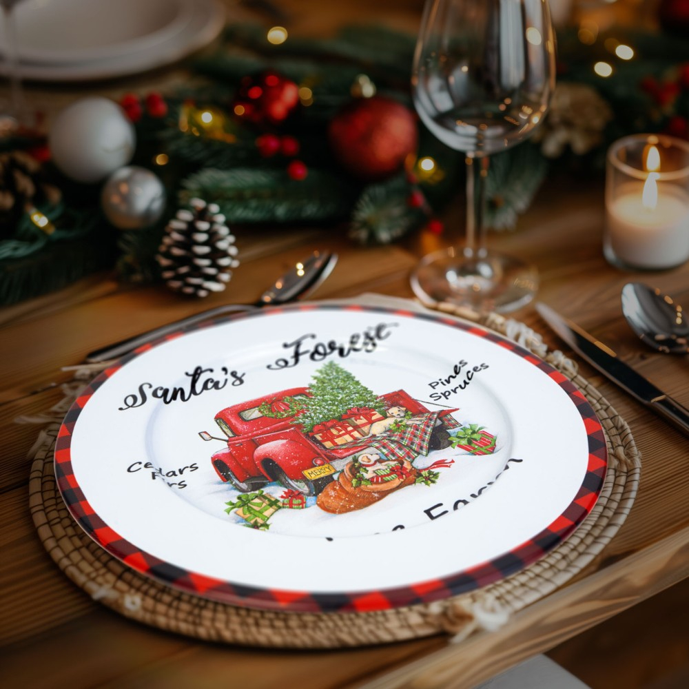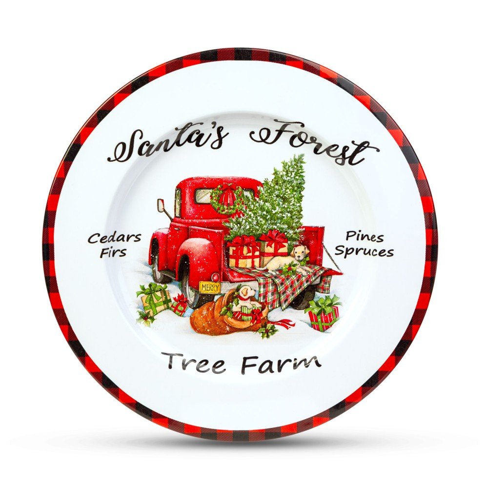 Tavă de Crăciun din metal - masină - alb - 33 cm