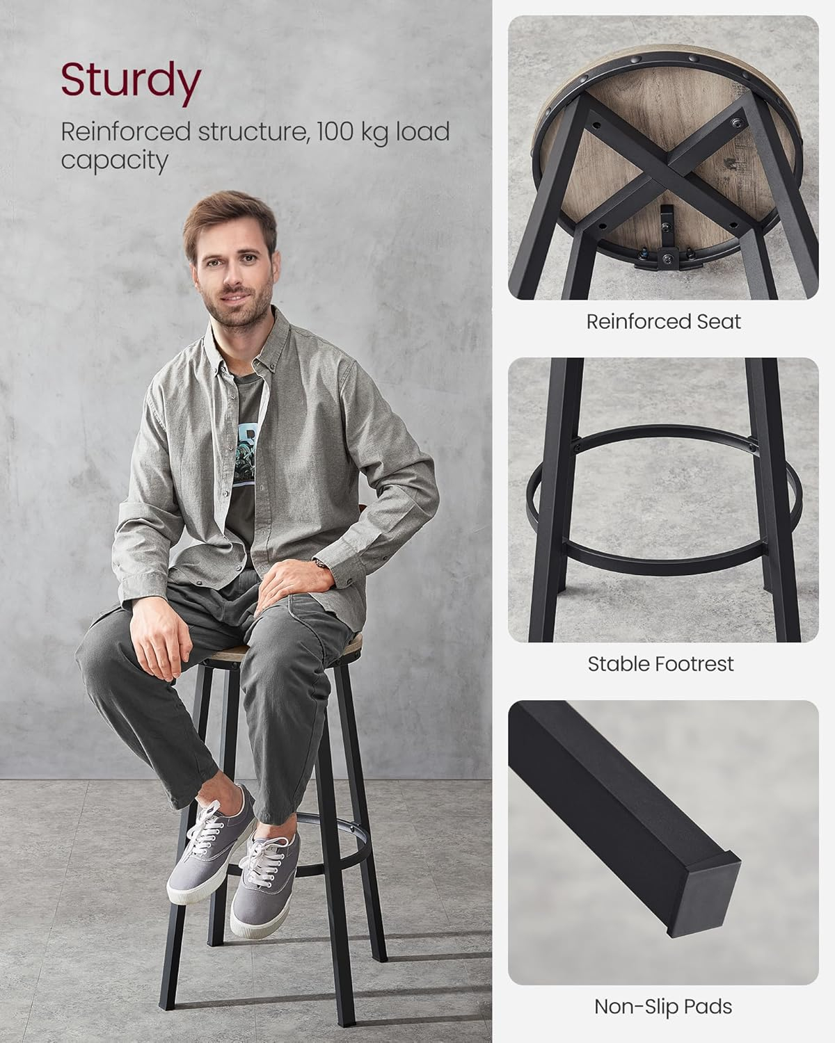 Specificatii: Culoare: Gri, NegruMaterial: Placi aglomerate, OtelDimensiunea produsului: 54 x 99 cm (Dia. x H)Diametrul scaunului: 37 cmInaltimea scaunului: 73 cmGreutate totala: 12,3 kgMax. Capacitate de incarcare statica per taburet: 100 kg Continutul pachetului: 2 x taburet de bar1 x Kit de asamblare1 x Instructiuni Note VASAGLE: Acest produs este destinat exclusiv utilizarii la domiciliu.Din motive de siguranta, copiii nu trebuie sa se urce pe produs sau sa se joace cu el.Capacitatea de incarcare statica a fiecarui taburet este de 100 kg. Va rugam sa nu depasiti limita de greutate a acestuia. Stabil Baza scaunului este intarita, suportul circular pentru picioare este sudat in siguranta, iar placutele antiderapante cresc frecarea pe podea. Aceste 2 scaune de bar industriale sunt stabile si rezista pana la 100 kg fiecare Confortabil pentru sedere Cu un scaun mare cu diametrul de 37 cm si un suport convenabil pentru picioare, acest set de scaune de bar va ofera un confort dublu Confortabil sa va sprijiniti Spatarul curbat este proiectat ergonomic pentru a se potrivi spatelui dvs. Cu un suport din otel ingrosat, spatarul este stabil si nu se va clatina Stil rustic Cu o suprafata greige, cadru din otel negru si accent de nit, aceste scaune inalte in stil industrial sunt perfecte pentru zona dvs. de bar, bucatarie, sufragerie si multe altele Asamblare rapida Pur si simplu puneti piesele numerotate impreuna in conformitate cu instructiunile ilustrate, ceea ce face ca asamblarea sa fie rapida