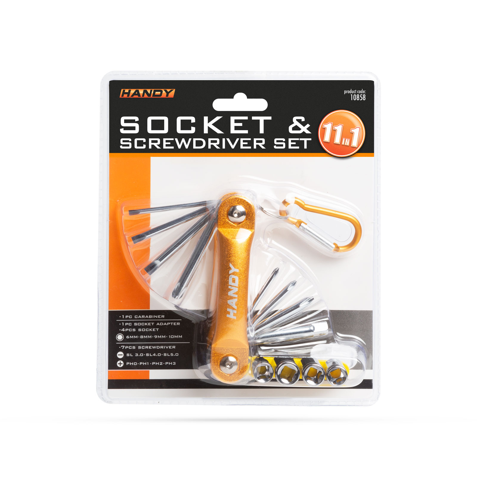 Ajutorul mereu la îndemână! Set de șurubelnițe pliabile și chei tubulare. Datorită brelocului și carabinei practice, poate fi fixat cu ușurință pe geanta de scule, pe centura de lucru, sau chiar pe bicicletă. Setul conţine 7 şurubelniţe şi 4 chei tubulare - cu adaptoarele potrivite.