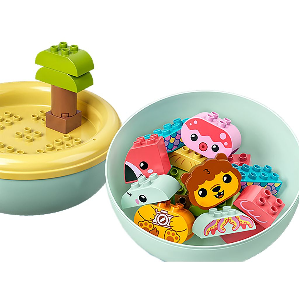 LEGO DUPLO Distractie in Cada Insula Plutitoare cu Animale (10965) este o jucarie educativa, plina de detalii, pentru copiii cu varste de la 18 luni in sus. Transforma ora de baie intr-o aventura tropicala distractiva, plina de ocazii de joaca! Un leu prietenos sta pe insula lui in timp ce un flamingo pluteste pe un colac iar un peste si o caracatita se joaca in apa. Setul include si o galetusa cu care copiii pot spala animalele si copacul care creste pe insula. Insula de separa in doua sectiuni si e usor de curatat dupa fiecare baie. Un carlig rotunjit atasat la colac permite legarea lui de colacii din seturile LEGO DUPLO Distractie in Cada Panda Rosu Plutitor (10964) si LEGO DUPLO Distractie in Cada Tren cu Animale Plutitor (10965). Jucarie de baie multifunctionala - LEGO DUPLO Distractie in Cada Insula Plutitoare cu Animale (10965) este o jucarie educativa, versatila si usoara de curatat, care include o insula ce poate fi folosita si ca si cutie de depozitare. Construieste, joaca-te si invata Acest set de joaca include un peste, o caracatita, un leu si un flamingo. Insula plutitoare se poate separa in doua sectiuni plutitoare, iar partea inferioara permite joaca si in afara cazii. Pune imaginatia la joaca copiii asambleaza animalele usoare de construit apoi se joaca si invata cu insula plutitoare. Cadou pentru prescolari Ofera acest set ca un cadou unui copil cu varsta de la 18 luni in sus Insula masoara peste 8 cm inaltime si 22 cm diametru. Învatare prin joaca Toate seturile LEGO DUPLO sunt create de catre experti pentru a include povesti captivante, numeroase culori, caractere diversificate si multe detalii care ii vor da copilului tau un avantaj semnificativ in viata.