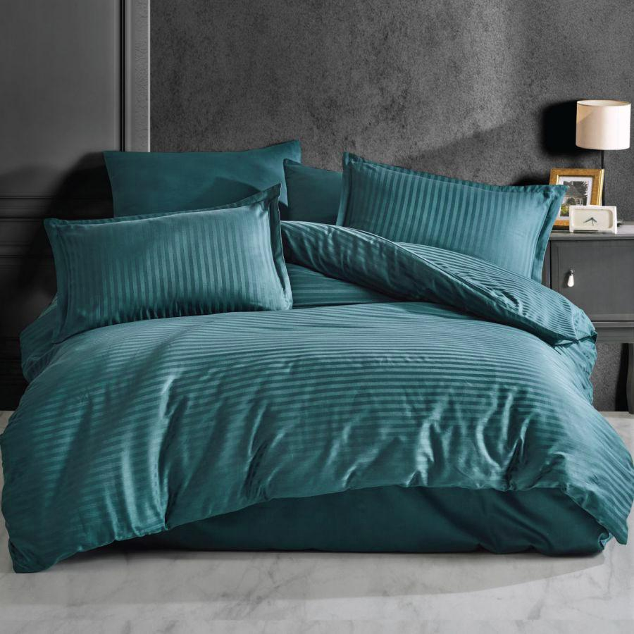 Lenjerie de pat damasc bumbac 100% - turcuaz două persoane