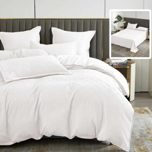 Lenjerie de pat natur uni baroque 6 piese cu cearsaf (alb)