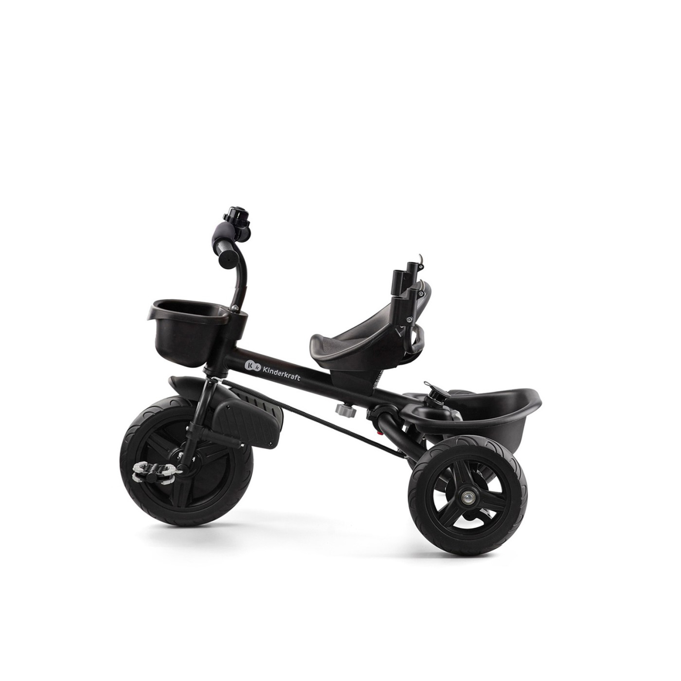 Tricicleta copii Kinderkraft AVEO, MALACHITE GREY Tricicleta AVEO MALACHITE GREY de la Kinderkraft este un produs potrivit pentru copiii intre 9 luni si aproximativ 5 ani. Este dotata cu roti rezistente, care nu trebuie umflate. Un atu suplimentar al tricicletei AVEO MALACHITE GREY este scaunul pivotant, dar face posibila reglarea cu spatele sau fata catre directia de mers. Este un produs care creste impreuna cu copilul constructia modulara pliabila permite transformarea usoara si potrivirea in functie de varsta copilului. Roti mari pentru orice teren Tricicleta AVEO MALACHITE GREY are roti care nu trebuie umflate. Sunt impenetrabile, si asigura o buna aderenta la sol, indiferent daca mergeti pe trotuar sau pe o strada cu pietris. Scaun pivotant Scaunul se poate roti cu fata sau spatele catre directia de mers. De aceea tricicleta este potrivita incepand cu varsta de 9 luni. Va fi un companion de nepretuit pentru fiecare plimbare. Atunci cand cel mic creste, o vei transforma cu usurinta pe AVEO MALACHITE GREY intr-o tricicleta independenta. Pliere usoara Vei lua cu tine peste tot aceasta tricicleta - AVEO MALACHITE GREY se pliaza in doar cateva clipe. Încape in portbagajul masinii, dar si intr-un dulap daca nu ai destul spatiu in casa ca sa tii tricicleta desfacuta. Siguranta in orice situatie Tricicleta este dotata cu centuri de siguranta in 3 puncte si bara de protectie. Spatar inalt si comod Spatarul inalt le permite celor mici sa se sprijine liber in timpul mersului. Mersul pe tricicleta AVEO MALACHITE GREY este foarte confortabil, indiferent de directia in care este orientat scaunul. Doua ghidoane AVEO MALACHITE GREY este o tricicleta adaptat atat copiilor, cat si parintilor. Manerul reglabil are un mecanism special cu ajutorul caruia poti bloca posibilitatea de virare de catre copil. Vei putea astfel manevra singur in directia potrivita. Mecanism de pedalare libera Functia de pedalare libera ii permite copilului sa pedaleze fara a pune bicicleta in miscare. Trebuie doar misti un mic maner pentru ca pedalele sa nu se mai invarta atunci cand copilul oboseste. Manerul parintelui reglabil Poti regla cu usurinta manerul lui AVEO MALACHITE GREY in functie de inaltimea ta. În doar cateva clipe vei regla manerul la inaltimea aleasa pentru ca mersul cu tricicleta sa fie confortabil si pentru parinte. Suporturi rabatabile pentru picioare Langa roata din fata sunt plasate suporturi, pe care copilul isi poate sprijini picioarele obosite de pedalat. Aceasta sunt potrivite si pentru copiii mai mici, care nu ajung inca la pedale. Copertina pliabila AVEO MALACHITE GREY are o copertina pliabila mare, care il protejeaza pe copil de soare si vant. Îi poti regla unghiul de inclinare pentru ca cel mic sa aiba mereu umbra in timpul plimbarii. Accesorii practice Tricicleta include o geanta pentru lucruri mici, 2 cosuri (unul langa ghidon si celalalt in spatele scaunului) si un suport pentru paharul parintelui. Fabricatie Materiale Cadru otel tesatura poliester Dimensiuni Desfacuta 112 x 50,5 x 106,5 cm Diametrul rotilor fata 26 cm, spate 21,5 cm Înaltimea ghidonului - 57 cm Lungimea spatarului - 65 cm Manerul parintelui - 76, 86, 89 cm