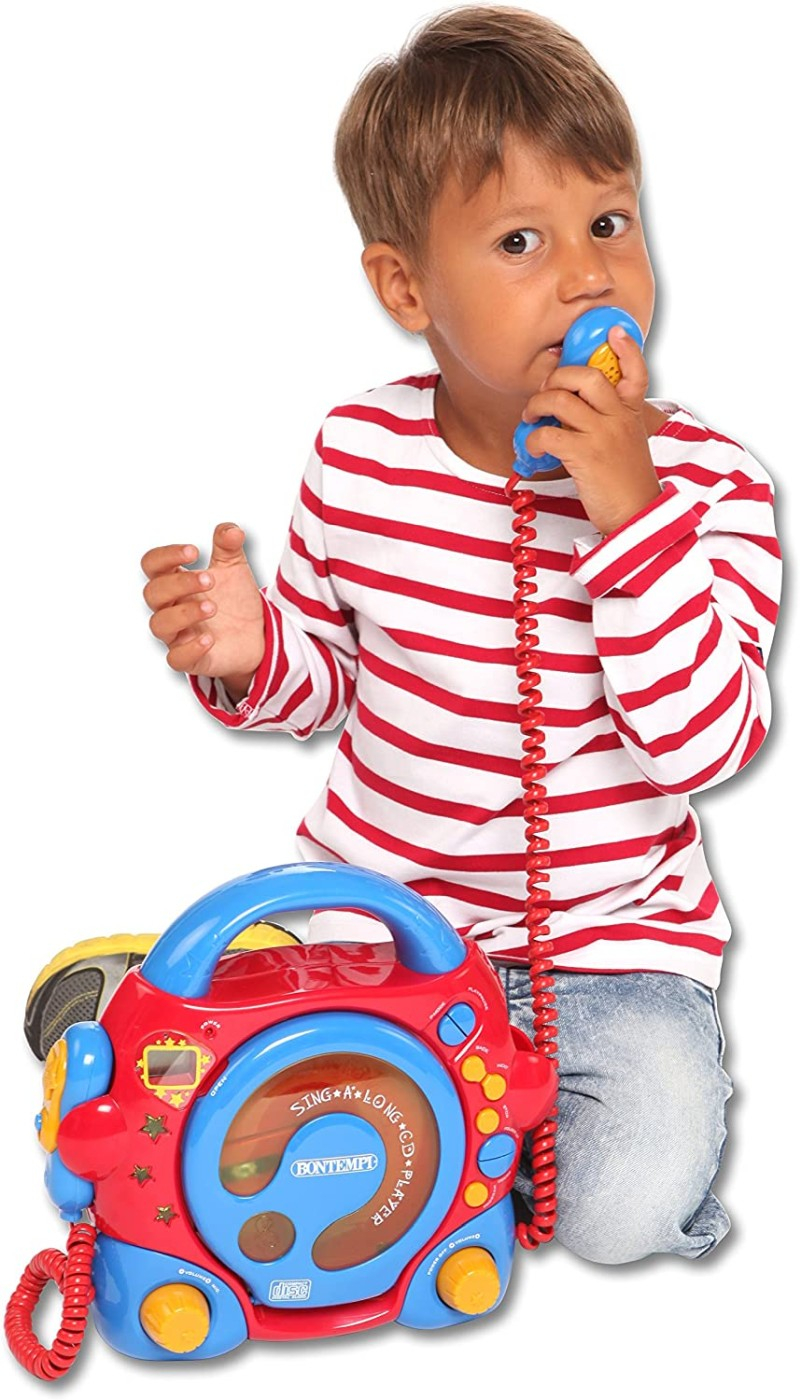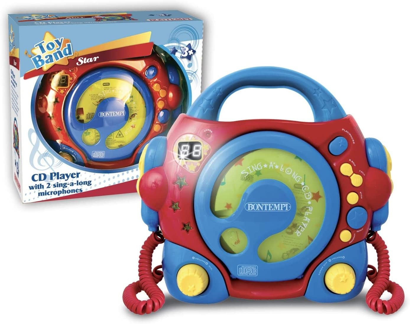 Cd player-ul portabil cu 2 microfoane este device-ul ideal pentru animarea petrecerilor copiilor. Caracteristici efecte luminoase, display luminos cu indicator digital, buton on/off pentru volum, control volum pentru microfoane, posibilitate de selectare sau de repetare a melodiei, adaptor inclus.Beneficii familiarizarea cu muzica si ritmul, dezvoltarea abilitatilor sociale si cognitive, coordonarea miscarilor, atentia distributiva.Produsul necesita 4 baterii de 1.5V R14/C (nu sunt incluse).