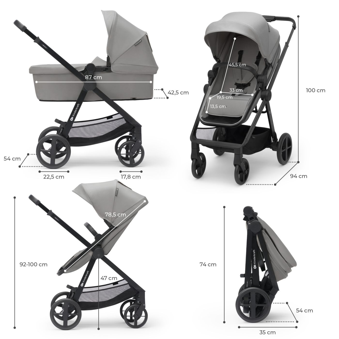 Carucior Kinderkraft NEWLY, 3 in 1, LIGHT GREY Iata-l pe NEWLY LIGHT GREY- caruciorul pentru copii 3 in 1 modern pentru copii de pana la 22 kg, adica pana la aproximativ 4 ani, care te va incanta prin functionalitate si greutatea redusa. Este unul dintre cele mai usoare modele multifunctionale de pe piata internationala - cantareste doar 7,5 kg, ceea ce il face foarte usor de manevrat. Are un scaun 2 in 1 pe care il vei transforma cu usurinta din landou in carucior sport cu doar cateva miscari. Rotile mari cu amortizare fac manevrarea mai usoara chiar si pe strazile aglomerate sau aleile parcurilor. NEWLY LIGHT GREY se pliaza impreuna cu sezutul atasat - iti trebuie doar o clipa pentru a pregati caruciorul de drum. Setul include si o scoica auto 0-13 kg si adaptoare universale* cu ajutorul carora vei putea atasa cu usurinta scoica la cadrul caruciorului. De aceea cand cel mic adoarme in timpul calatoriei cu masina nu va mai trebui sa il trezesti. Usor si multifunctional Caruciorul 3 in 1 NEWLY LIGHT GREY a fost creat pentru a-ti oferi sprijin in ingrijirea copilului de la nastere si pana la aproximativ 4 ani. În ciuda multelor sale elemente, NEWLY LIGHT GREY este unul dintre cele mai usoare carucioare multifunctionale disponibile pe piata. Pliere usoara Caruciorul se pliaza in doar cateva momente impreuna cu sezutul. Trebuie sa pleci in calatorie? Sau sa urci zilnic scarile? Nicio problema - doar o clipa si NEWLY LIGHT GREY va fi pregatit. Este un carucior proiectat pentru depozitare chiar si in apartamentele mici. De la nastere pana la 22 kg Caruciorul pentru copii NEWLY LIGHT GREY a fost creat pentru copii de la nastere si pana la 22 kg. Are un sezut 2 in 1 pe care il vei transforma cu usurinta din landou intr-un carucior sport orientat cu fata sau spatele catre directia de mers. Datorita acestei functii nu va trebui sa irosesti spatiu suplimentar pentru depozitarea landoului atunci cand copilul creste. Scoica auto se poate atasa la cadru Posibilitatea de a atasa scoica auto la cadrul caruciorului ajuta sa te deplasezi cu cel mic atat la plimbare cat si in casa, atunci cand adoarme in masina. Setul include adaptoare universale*. Roti care nu trebuie umflate Rotile cu amortizare sunt rezistente la intepaturi si cel mai important - nu trebuie umflate. Sunt mereu pregatite pentru plimbare! Rotile din fata se rotesc 360 de grade si poseda o un sistem de blocare pentru mersul inainte, ideal pentru terenurile mai dificile. Treci cu el peste orice obstacol. Copertina mare si impermeabila NEWLY LIGHT GREY este un carucior multifunctional, ideal pentru fiecare sezon. Are o copertina mare cu un parasolar suplimentar si fereastra pentru contactul cu copilul, precum si un panou de ventilatie. Copertina este realizata dintr-un material impermeabil cu filtru UPF50+ care il protejeaza pe copil nu doar de vant si ploaie, ci si impotriva radiatiilor UV daunatoare. Accesorii practice Nu trebuie sa cumperi accesorii suplimentare pentru NEWLY LIGHT GREY. Setul include husa de picioare, husa de picioare, adaptoare universale* si un scaun auto 0-13 kg. Interval larg de reglare NEWLY LIGHT GREY este un carucior adaptat atat parintelui, cat si copilului. Spatarul se regleaza usor pentru a-i oferi celui mic un spatiu comod pentru odihna in aer liber. În plus in altimea adultului care manevreaza caruciorul nu mai este o problema - NEWLY LIGHT GREY are un maner reglabil pe care il potrivesti la inaltimea ta intr-o secunda. Informatii suplimentare 3 in 1 - landou si carucior sport intr-unul, scoica auto cu adaptoare incluse Pentru copii de la nastere si pana la 22 kg Pliabil impreuna cu sezutul si foarte usor Accesorii husa de picioare, husa de ploaie, scoica auto si adaptoare 2 directii de mers pentru caruciorul sport Bara de protectie atasata in ambele parti Copertina din material impermeabil cu filtru UPF50+ Ham de siguranta in 5 puncte cu protectii Roti impenetrabile cu amortizare Roti frontale pivotante cu blocare pentru mersul inainte Cos incapator *Adaptoarele incluse sunt compatibile cu scaunele auto Kinderkraft MINK, Kiddy Evoluna I-Size 2, Evolution Pro 2, Maxi Cosi Mico, Mico AP, Mico NXT, Mico Max 30, Citi, Cabrio, CabrioFix, Cybex Aton, Aton 2, Aton Q, BeSafe iZi Go, iZi Go Modular, Nuna Pipa. Fabricatie Materiale Cadru aluminiu tesatura poliester Roti amestec de cauciuc si spuma Dimensiuni Desfacut Pliat 73 x 53 x 35 cm Roti frontale 18 cm spate 23 cm Greutate 7,5 kg