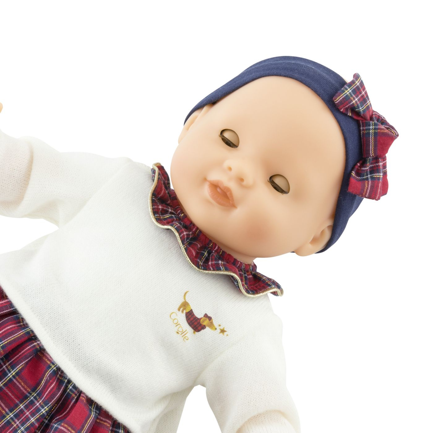 Suzanne este o papusa Corolle mare pentru a juca si a se comporta ca adultii. Masoara 36 cm, o dimensiune perfecta pentru bratele mici ale unui copil pentru a fi alintat, a fi mama si a reproduce gesturile care fac din maturizare sau realitate. O papusa mare cu pielea alba fata, bratele si picioarele sunt fabricate din vinil moale la atingere, cu un parfum delicat de vanilie. Corpul sau flexibil faciliteaza miscarea si se ridica in sezut. Cu ochii sai caprui somnorosi, adoarme cand este intinsa pe spate. Suzanne este imbracata de sarbatori intr-o tinuta formata dintr-un pulover tricotat de culoarea fildesului, cu guler in carouri bleumarin si rosu si o fusta in carouri.