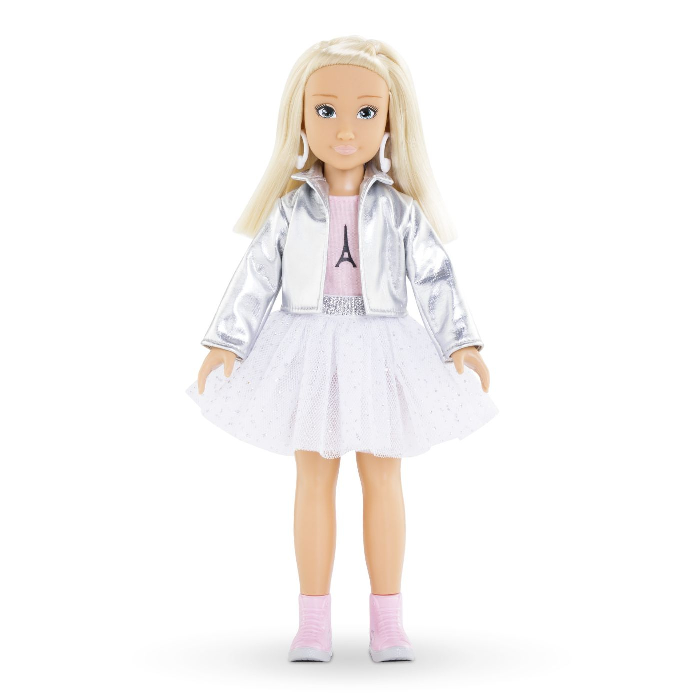 Setul Saptamana Modei de Ziua Indragostitilor de la Paris include o papusa Valentine, de 28 cm, si 5 accesorii 1 pereche de cercei detasabili, 1 telefon mobil, 1 husa pentru telefon mobil, 1 bentita de par si 1 geanta. Valentine are o fata frumoasa, naturala, cu trasaturi delicate care miroase a vanilie. Are ochii pictati si parul blond pana la umeri. Poarta o fusta gri din tul, un tricou roz, o jacheta, o pereche de botine roz detasabile si o pereche de cercei detasabili. Valentine are un corp realist de adolescenta si poate sta in picioare si in sezut singura.