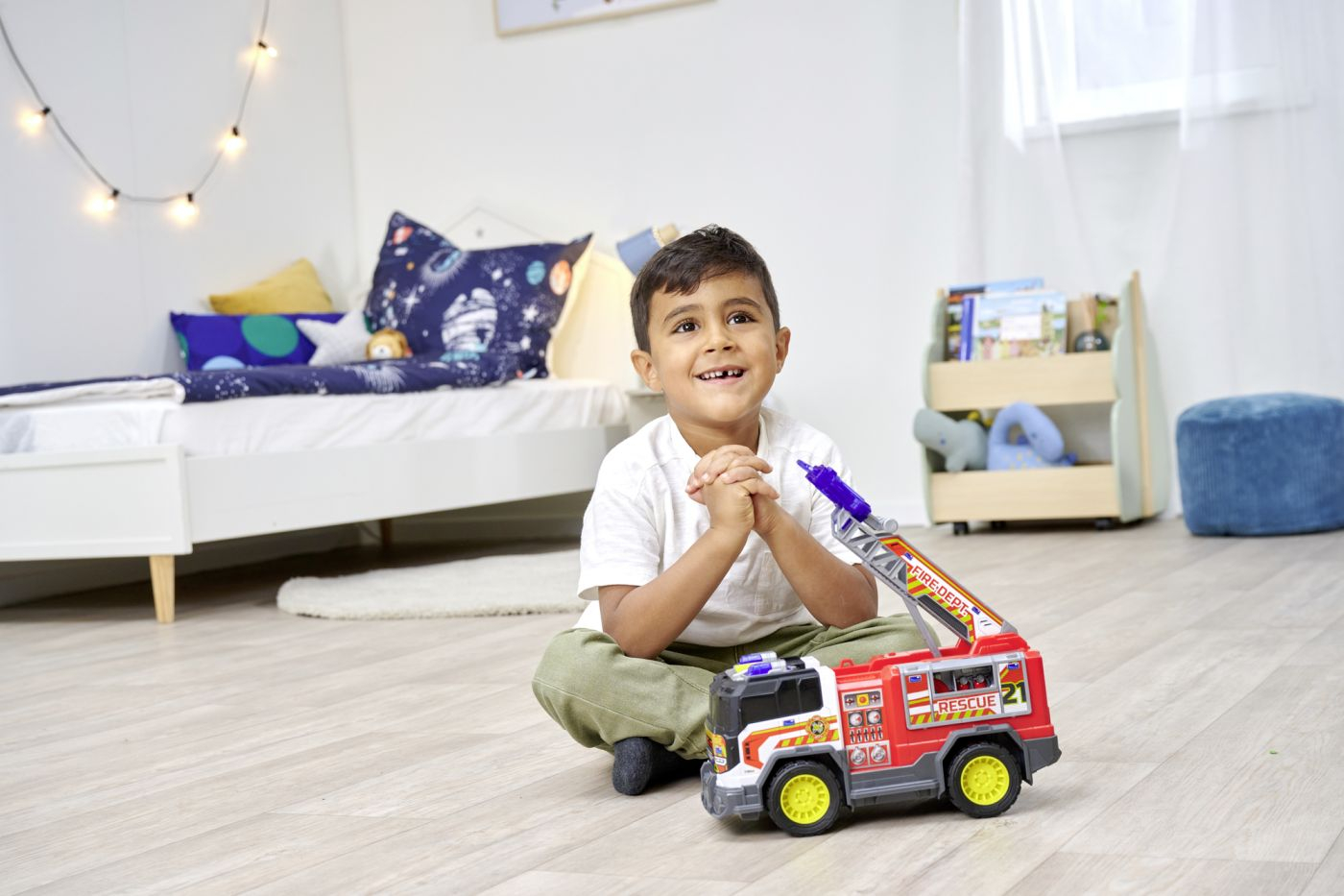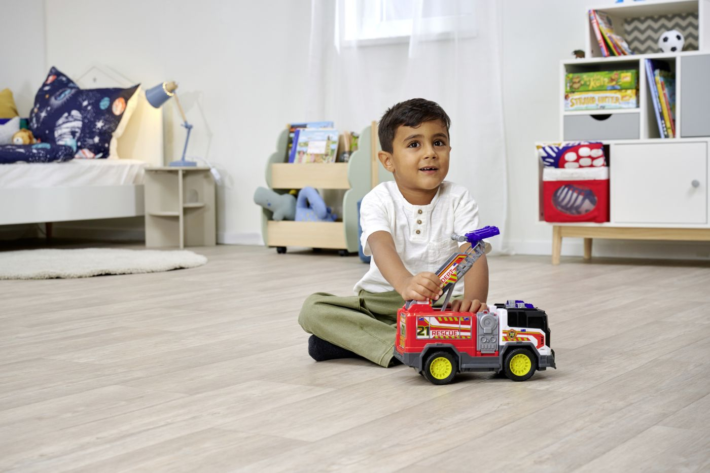Unitate de salvare a incendiilor (30 cm) - masina de pompieri mare cu functie de tragere si scara, cu sunet si lumina. Scara masinii de jucarie vine cu un tragator de discuri, pe care copiii il folosesc pentru a trage cele 2 discuri incluse - pentru a asorta lucrurile reale cu motive de apa si drone. Partile mobile, cum ar fi scara pliabila si compartimentul lateral care se deschide, simuleaza operatiuni reale de salvare si stimuleaza imaginatia si creativitatea fetelor si baietilor.