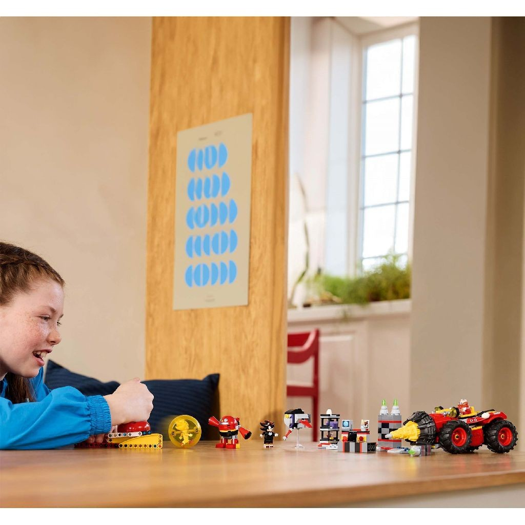 Alimenteaza imaginatia fanilor de 8+ ani ai jocurilor video cu setul de constructie cu erou de aventura Super Sonic vs. Egg Drillster (76999). Acest cadou LEGO® Sonic the Hedgehog&trade de colectie, inspirat de jocurile video, include un vehicul Egg Drillster cu burghiu rotativ si un doc pentru vehiculul planor detasabil, un lansator de sfere de viteza si o sfera de viteza, plus un laborator cu un perete care se sparge. De asemenea, setul include 7 personaje din jocurile video Shadow, Super Sonic, Dr. Eggman, un Pocky, un Pecky, un Egg Pawn Badnik si un Gun Wing programat. Acest formidabil set Sonic este un cadou minunat pentru gameri si permite fanilor sa interpreteze pe roluri povesti cu Shadow si Super Sonic, in care acestia gonesc sa-i invinga pe puternicul Egg Drillster si ticalosii lui Dr. Eggman, distrug laboratorul acestuia si isi salveaza prietenii animale capturati. Actiunea rapida se imbina cu joaca independenta in jucariile LEGO Sonic the Hedgehog. Copiii se bucura si de o aventura de constructie intuitiva cu aplicatia LEGO Builder, in care pot apropia si roti modelele, salva seturi si monitoriza propriul progres.