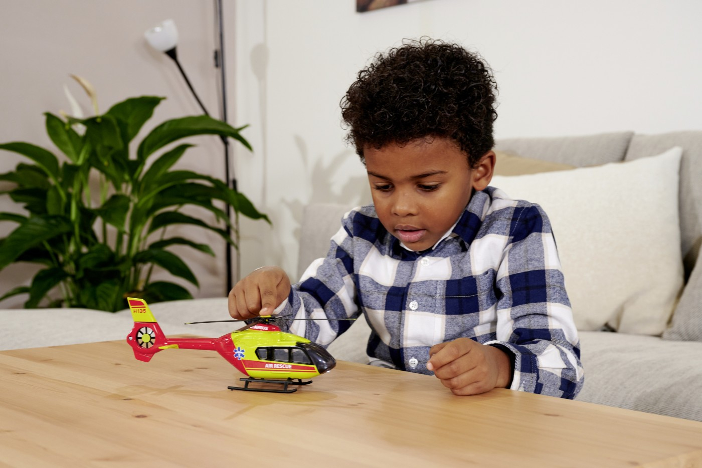 Elicopter de salvare Majorette Airbus H135 cu lumini si sunete. Elicopterul are elice rotative, efecte luminoase si sonore, o lumina de avertizare albastra si doua efecte sonore grozave care pot fi activate prin apasarea mijlocului elicei. .