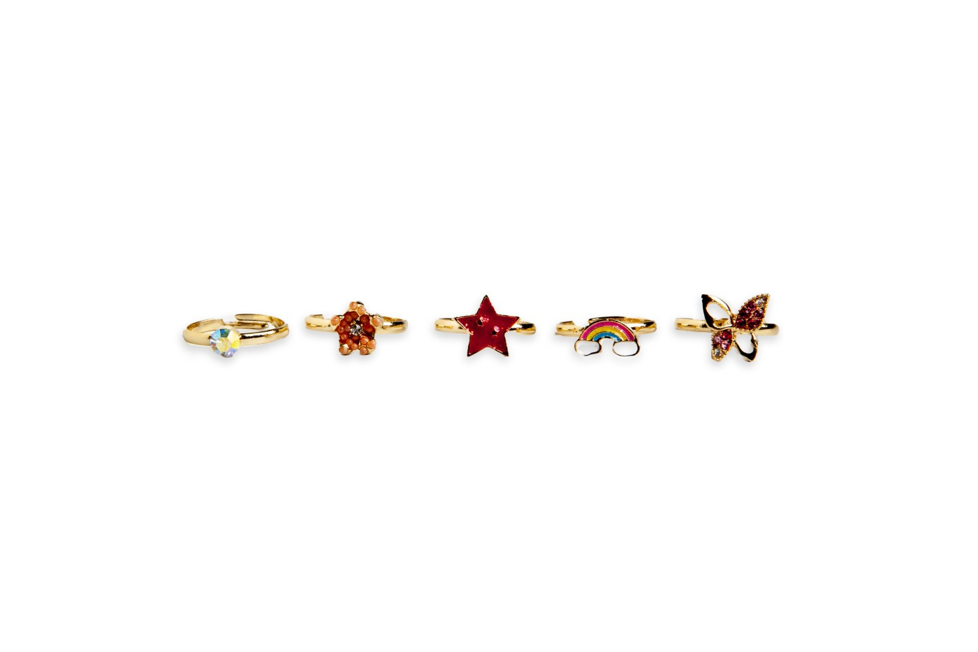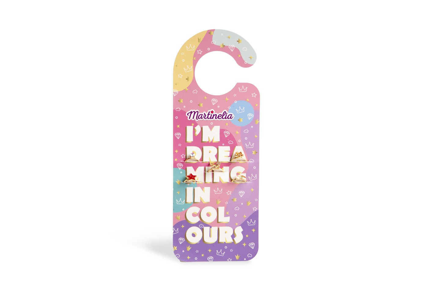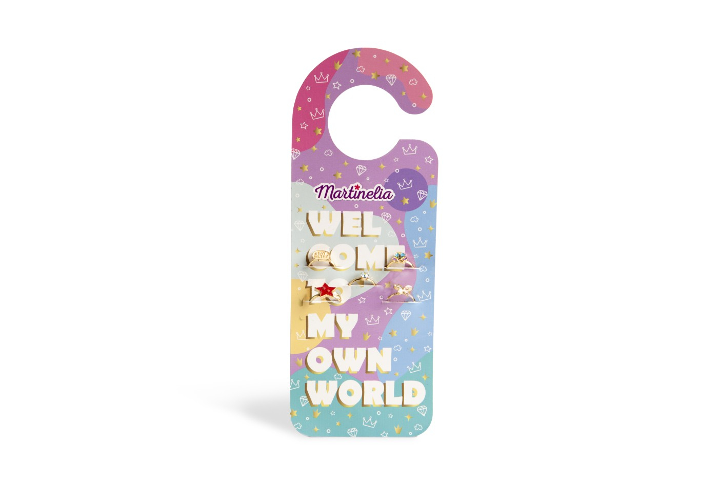 Welcome to my World de la Martinelia - un set uimitor cu 5 inele pentru fetite viu colorate si cu modele deosebite. Include suport de agatare si depozitare. Martinelia este un brand care face parte din grupul Aquarius Cosmetic SL , principalul distribuitor de parfumuri si cosmetice in Spania inca din anul 1995. in ziua de astazi, brandul se gaseste in toata lumea, nu doar in Spania. Produsele brandului la Martinelia pot fi recunoscute cu usurinta datorita ambalajului unic si jucaus. in oferta brandului Martinelia veti gasi seturi de cadouri, accesorii pentru par, popularele balsamuri de buze aromate si alte accesorii care vin in ambalaje haioase. Copiii vor fi incantati de produse precum setul decorativ in forma de ursulet, peria de par unicorn sau periuta de dinti cu sirene. Martinelia ofera pentru cei mici o gama larga de produse distractive si inovatoare in toate culorile curcubeului. Seturi de machiaj, rujuri si tot felul de produse si accesorii concepute pentru a tine pasul cu ultimele tendinte. Produsele sunt sigure si prietenoase cu mediul fiind special proiectate pentru a putea fi folosite de copii.