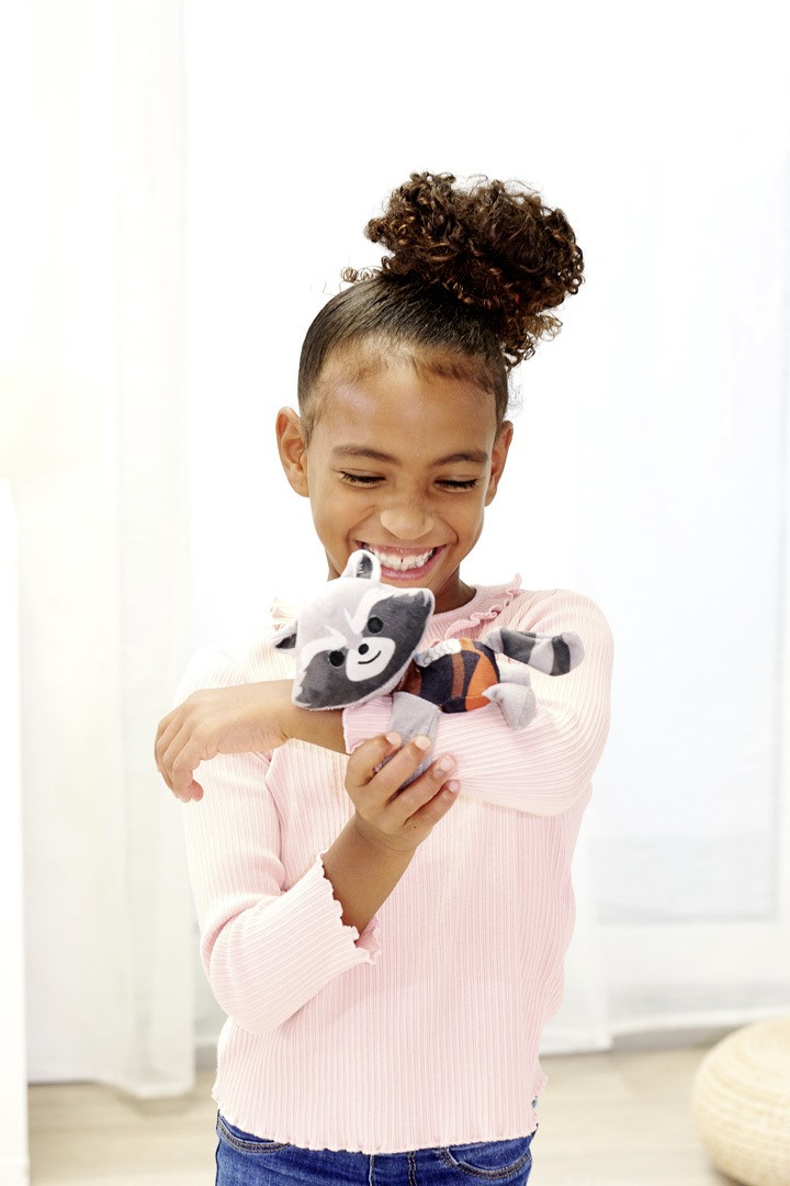 Nimic nu poate merge prost cu Rocket Raccoon ca bratara de jucarie de plus, pentru ca inteligentul raton MARVEL din Guardians of the Galaxy este un maestru strategic genial! Datorita bratelor sale incrucisate, figurina de plus Rocket poate fi atasata cu usurinta in orice loc, fie pe brate, picioare, haine sau obiecte.