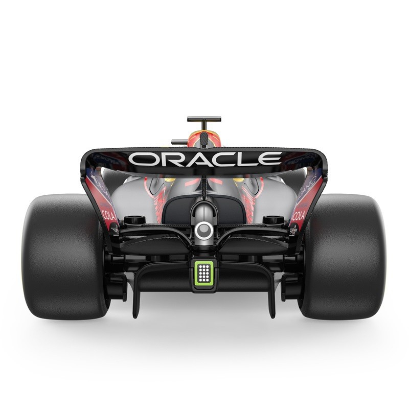 Copilul dumneavoastra se poate juca in voie cu masina cu telecomanda Oracle Red Bull Racing RB18, scara 1 la 18, oferita de brandul international Rastar. Nicio cursa nu este imposibil de castigat cu acesta masinuta, replica oficiala cu licenta a modelului original, construita cu mare atentie la detalii. Masinuta are proportiile ideale pentru momente pline de distractie si amuzament, avand dimensiunile in centimetri dupa cum urmeaza 32*12*6 .Masinuta functioneaza pe frecventa de 2.4G.Alimentarea se face astfel pentru masinuta sunt necesare 4 baterii tip AA , iar pentru telecomanda 2 tip AA.Masinuta se poate deplasa in toate directiile inainte, inapoi, stanga sau dreapta. Masina cu telecomanda Oracle Red Bull Racing RB18, scara 1 la 18, poate rula cu o viteza aproximativa de 10km/h, are tractiune 2WD, anvelope de cauciuc, posibilitate de reglaj a directiei direct pe sasiu si o raza de actiune a telecomenzii de circa 20 de metri.